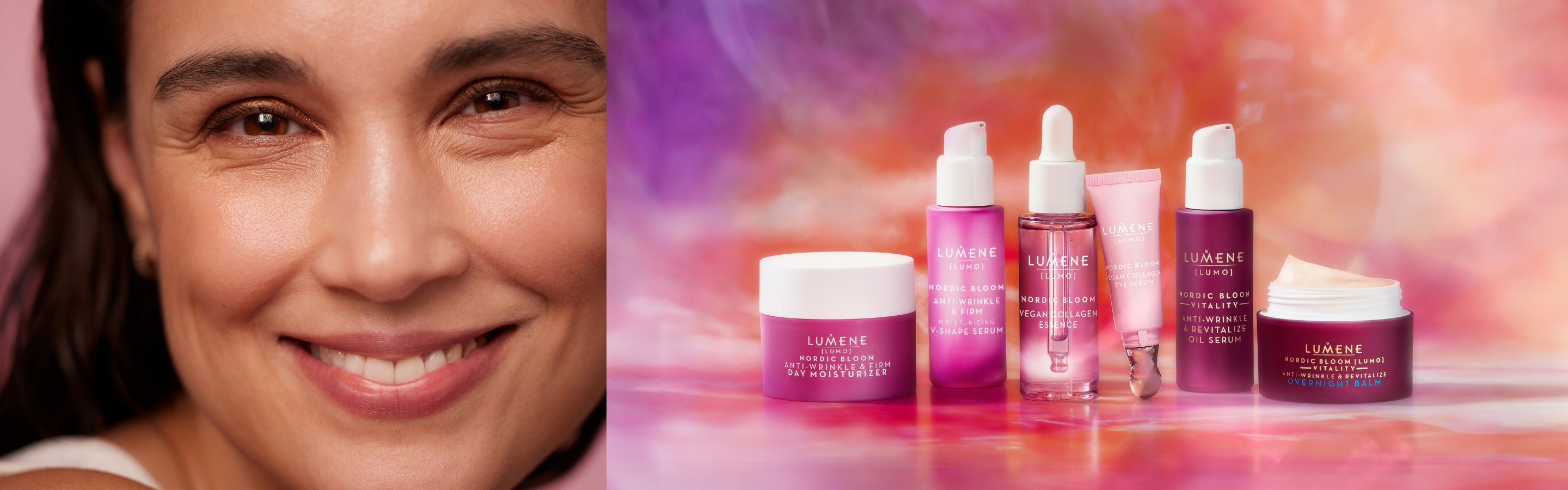 Nauti sileämmän ja kiinteämmän näköisestä ihosta! Lumene LUMO -tuotteiden tehoaineena toimivat pohjoisten marjojen pre-retinoli tai vegaaninen kollageeni. Niiden kosteuttava, ryppyjä häivyttävä ja ihoa kiinteyttävä vaikutus toimii jo ikääntymisen ensimerkeistä alkaen. Löydät tuotelinjan laajasta valikoimasta ihotyypillesi sopivat voiteet ja seerumit kasvoille ja silmänympärysiholle.