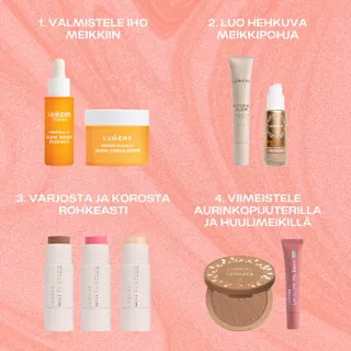 Meikkilook, joka on saanut inspiraationsa Stockholm Style -tyylistä, on lämmin, valoa heijastavan kevyt ja viimeistelty. Lookin ydin on täydellisen hehkuva ja luonnollisesti päivettyneen näköinen meikkipohja, jossa käytetään rohkeasti aurinkopuuteria korostamaan kasvoja. Näin luot meikkilookin LUMENEn suosikkituotteilla.