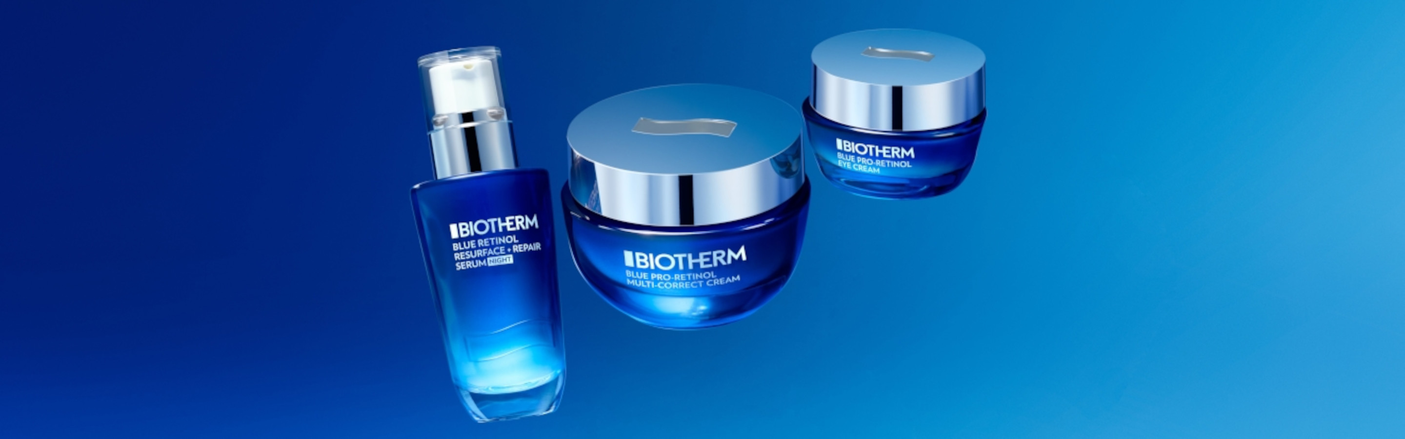 Löydä Biothermin uusi Blue Pro-Retinol Eye Cream -silmänympärysvoide ja koe sen anti-age-ominaisuuksien edut. Erittäin tehokas uudistava silmänympärysvoide, joka vähentää silmänympärysihon juonteita ja ryppyjä. Vain viikon käytön jälkeen silmänympärysihosi näyttää kirkkaammalta ja kiinteämmältä, ja kuukauden kuluttua huomaat ryppyjen vähentyneen merkittävästi silmänympärysihon alueella*.