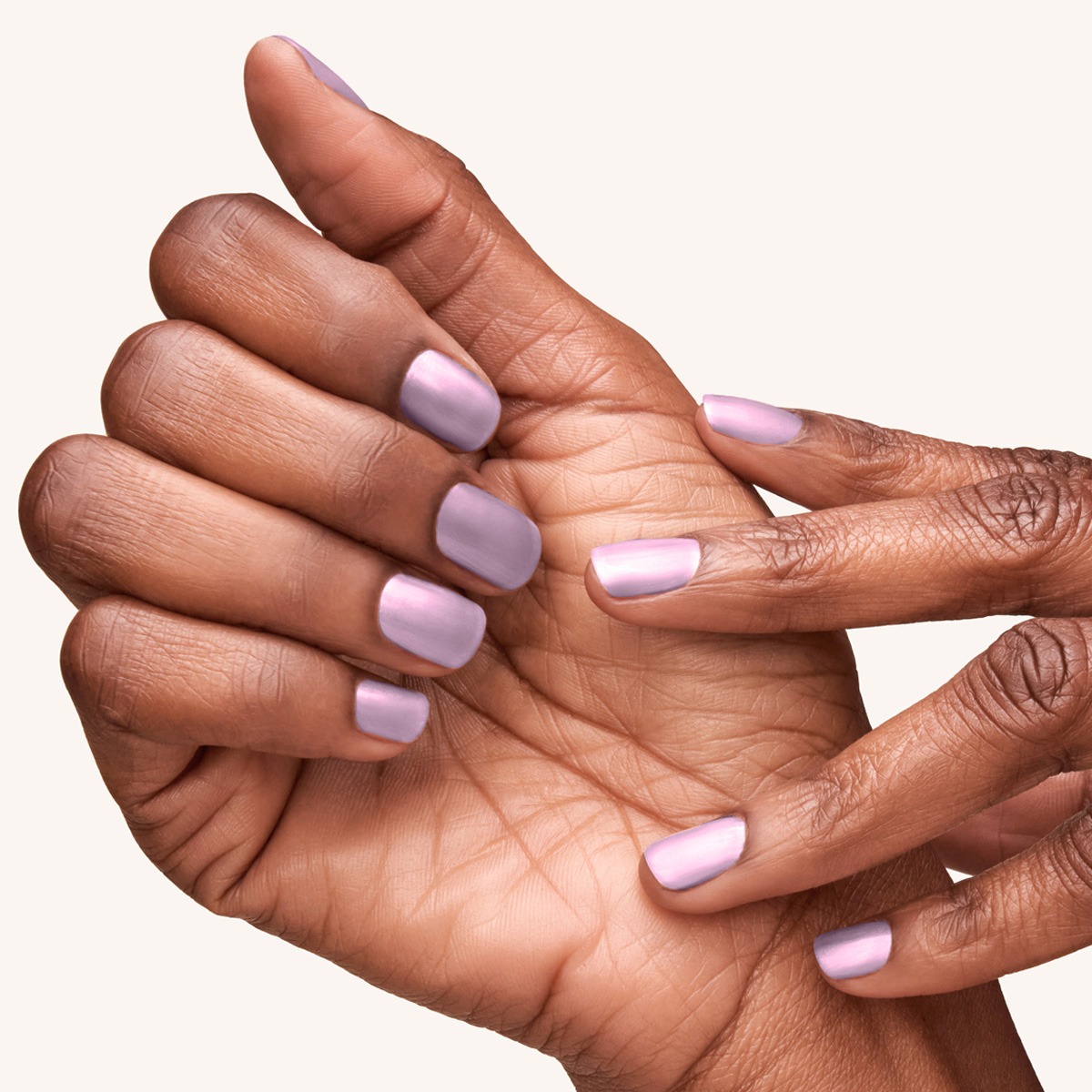 Butyl Acetate, Ethyl Acetate, Nitrocellulose, Adipic Acid/Neopentyl Glycol/Trimellitic Anhydride Copolymer, Acetyl Tributyl Citrate, Isopropyl Alcohol, Stearalkonium Hectorite, Sucrose Acetate Isobutyrate, Acrylates Copolymer, Benzophenone-1, Benzophenone-3, Dimethicone, Polyacrylate-4, Silica, Alumina, Polyethylene Terephthalate, Synthetic Fluorphlogopite, Tin Oxide. (+/-: Titanium Dioxide (CI 77891), Red 7 Lake (CI 15850), Violet 2 (CI60725), Mica (CI 77019), Iron Oxides (CI77491), Red 34 Lake (CI 15880), Iron Oxides (CI 77499), Yellow 5 Lake (CI 19140), Bismuth Oxychloride (CI 77163), Barium Sulfate, Red 6 Lake (CI 15850), Guanine, Ferric Ferrocyanide (CI 77510), Red 7 (CI 15850), Black 2 (CI 77266), Red 34 (CI 15880), Aluminum Powder (CI77000), Blue 1 Lake (CI42090), Chromium Hydroxide Green (CI 77289), Carmine (CI 75470)).