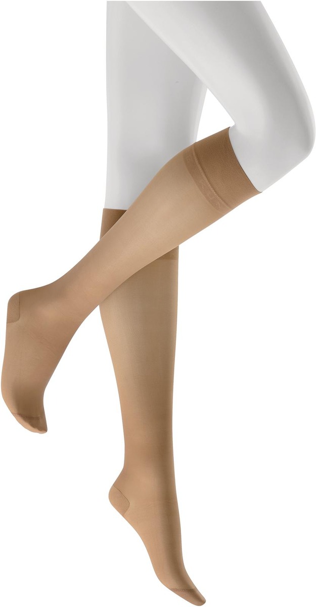 Puolipeittävät, mattapintaiset tukipolvisukat 40 den. Leveä mukava resori. Vahva tuki, kompressio 11-14 mmHg. Muotoiltu jalkaterä, kärki-ja kantapäävahvikkeet.