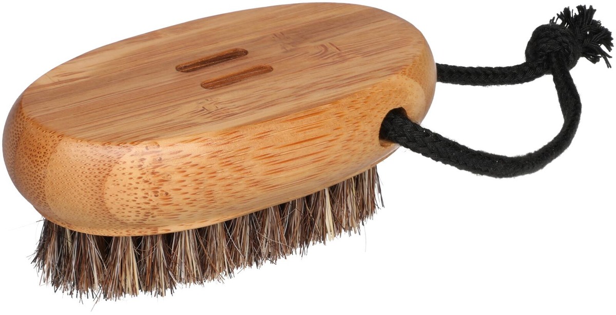 Soikean harjan pyöristetyt muodot ja bambuöljyllä käsitelty pinta tuntuvat mukavalta kädessä. Luonnonharjas puhdistaa kynnenaluset ja pienet ihoalueet tehokkaasti, mutta hellävaraisesti.