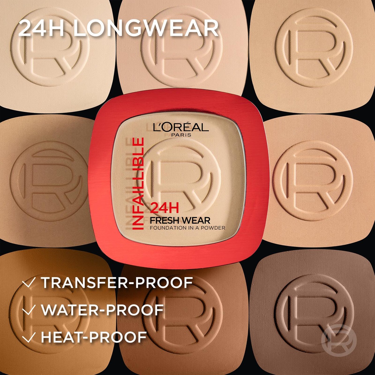 L'Oréal Paris Infaillible 24H Fresh Wear Foundation in a Powder Meikkipuuteri, 120 Warm Undertone, 30 ml