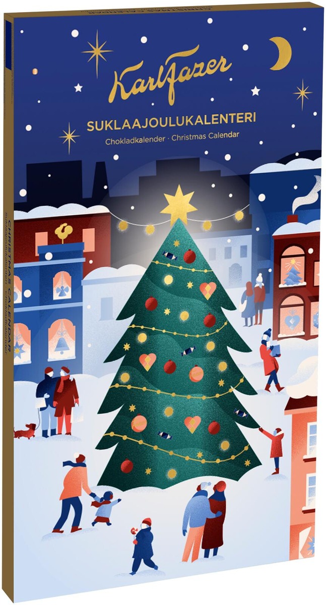 Suomen rakastetuin suklaa, jonka ainutlaatuisen täyteläisen maun ovat taanneet parhaat raaka-aineet jo vuodesta 1922 saakka. Upean Karl Fazer Joulukalenterin luukkujen takaa löytyy unelmasekoitus suussa sulavia suklaakonvehteja moneen makuun. Viimeinen luukku on täynnä Sinistä suklaata. Joulunodotuksen Sinisiin hetkiin itselle tai lahjaksi. Noudatamme kaakaonhankinnassamme Fazerin kaakaovisiota. Lue lisää www.fazercocoavision.com.