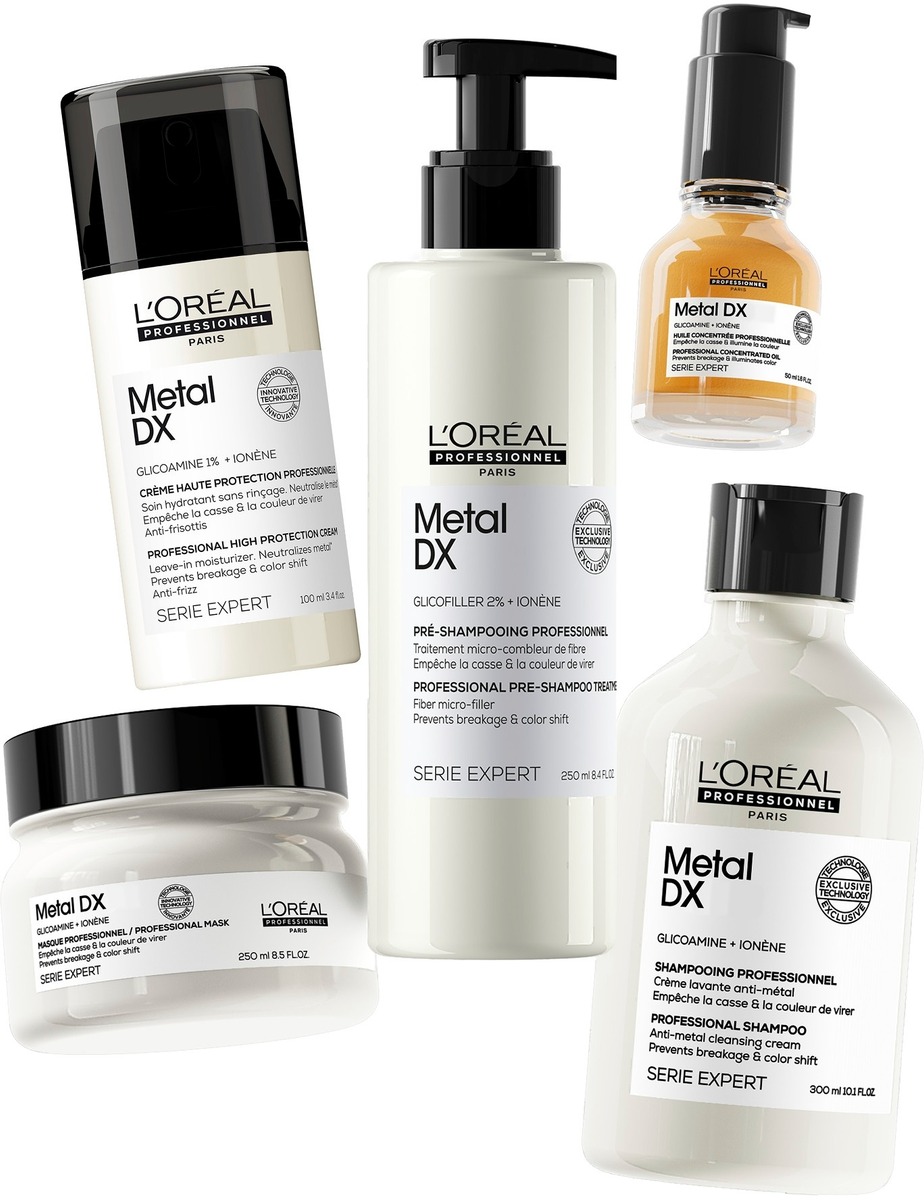 [KYSY METAL DX -KAMPAAMOHOIDOSTA]] Kysy seuraavalla kampaamokäynnilläsi Glicoaminea sisältävästä Metal DX -menetelmästä katkeilevien hiusten ja värimuutosten ehkäisemiseksi: -99 % katkeilevia hiuksia*** ja todenmukainen ja pitkäkestoinen hiusväri. Metal DX on kehitetty yhteistyössä väri-, balayage- ja vaalennuksen ammattikampaajien kanssa. @sebastiancolorist, @washingtonnunnes, @lucasdioslo & @charlotte_catherin