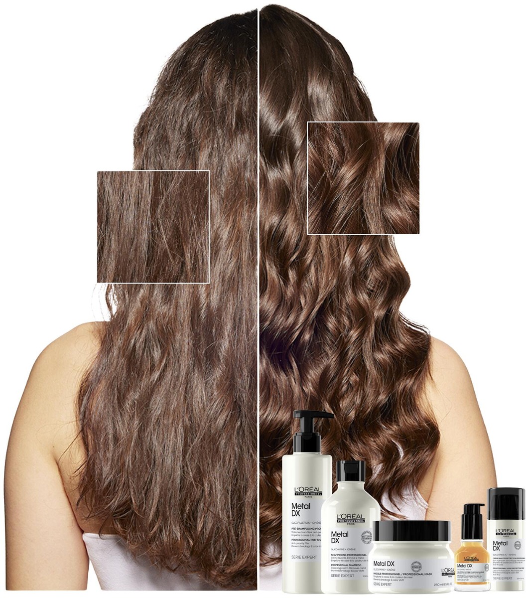 [KYSY METAL DX -MENETELMÄSTÄ] Kysy seuraavalla kampaamokäynnilläsi Glicoaminea sisältävästä Metal DX -menetelmästä katkeilevien hiusten ja värimuutosten ehkäisemiseksi: -99 % katkeilevia hiuksia*** ja todenmukainen ja pitkäkestoinen hiusväri. Metal DX on kehitetty yhteistyössä väri-, balayage- ja vaalennuksen ammattikampaajien kanssa. @sebastiancolorist, @washingtonnunnes, @lucasdioslo & @charlotte_catherin