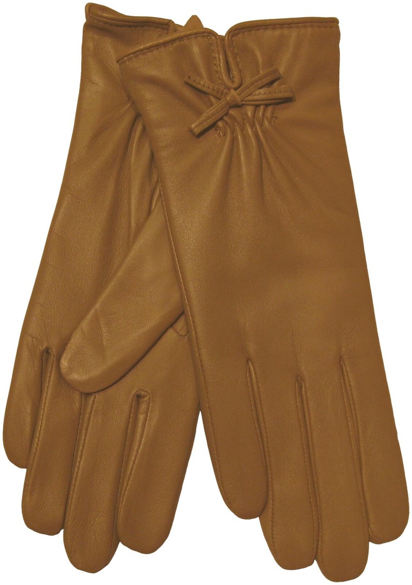 Tyylikkäät nahkakäsineet pehmeällä fleece-vuorella ja kauniilla rusettisomisteella. Saatavilla koot 7 - 8,5.