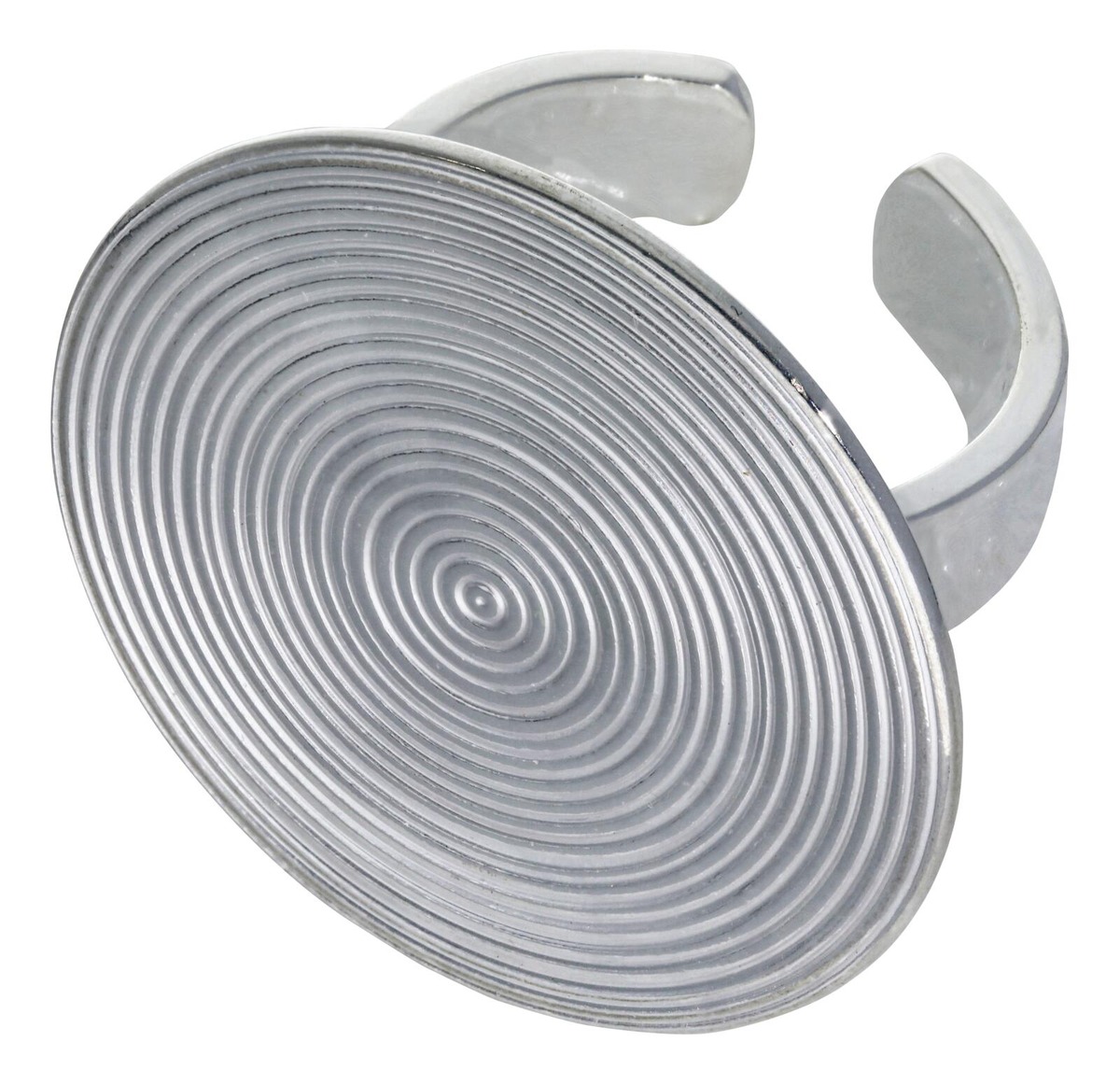Selkeälinjaiseen sormusrunkoon kiinnitetty hopeakiekko hohtaa kuin täysikuu. Kosmos-sormusta voit käyttää muiden Kosmos-korujen kanssa tai yksinään asukokonaisuutesi näyttävänä katseenvangitsijana. Avointa sormusrunkoa avartamalla tai supistamalla voit säätää sormuksen juuri sinun sormeesi sopivaksi. Vältä taivuttamasta sormusta edestakaisin – toistuvasta auki-kiinni -liikkeestä sormuksen runko väsyy ja voi lopulta katketa. Koruosan leveys 30 mm. Sormuksen halkaisija 18,5 mm. Suunnittelija Antonio Mazzamauro.