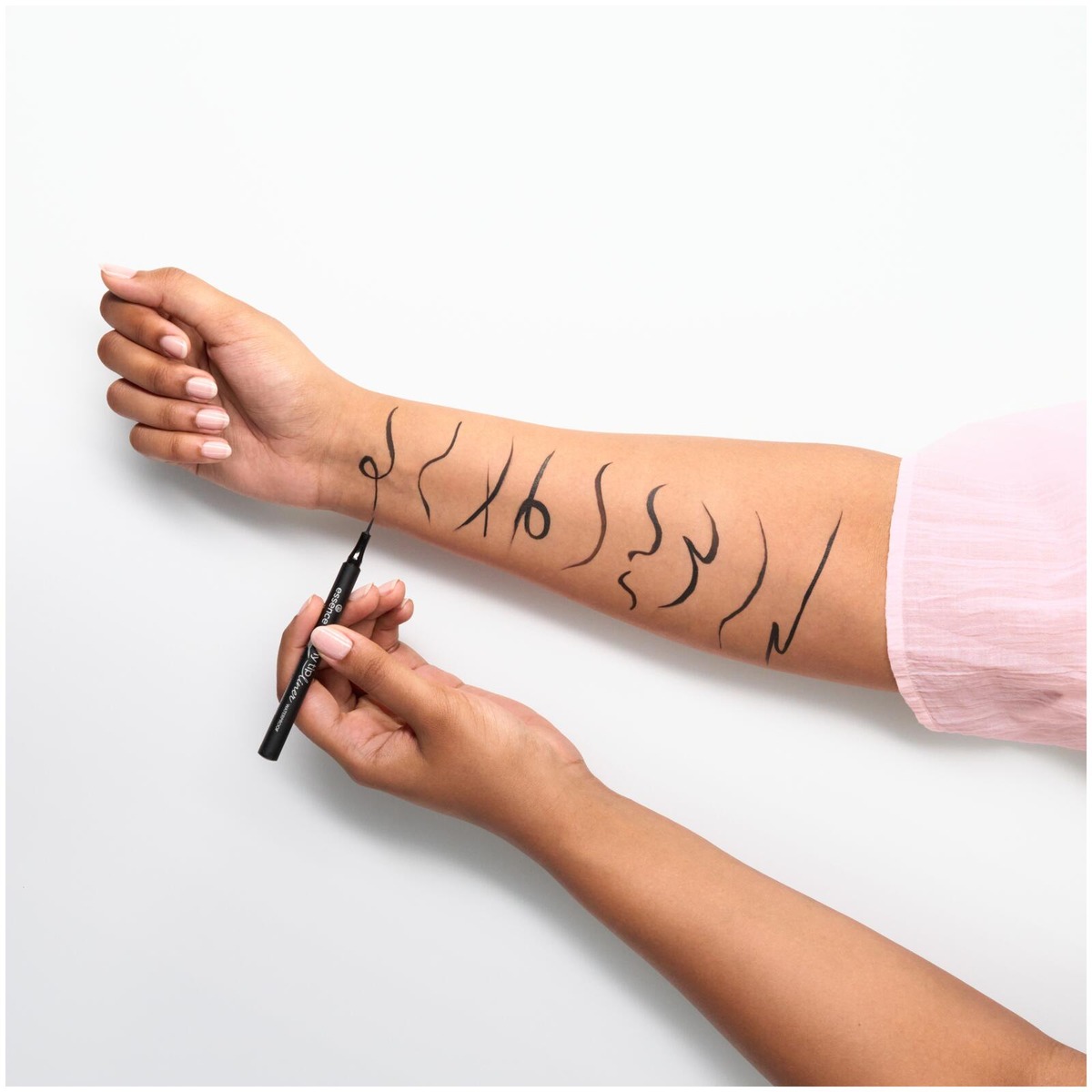 Muotoile kuin ammattilainen! Tässä erittäin pitkäkestoisessa, vedenpitävässä silmänrajauskynässä on erityisen kapea kärki, joka auttaa saavuttamaan tarkat silmänrajaukset kuten meikkitaiteilija! Syvänmusta koostumus jättää jälkeensä upean, matan lopputuloksen ja tuntuu miellyttävän kevyeltä luomilla.