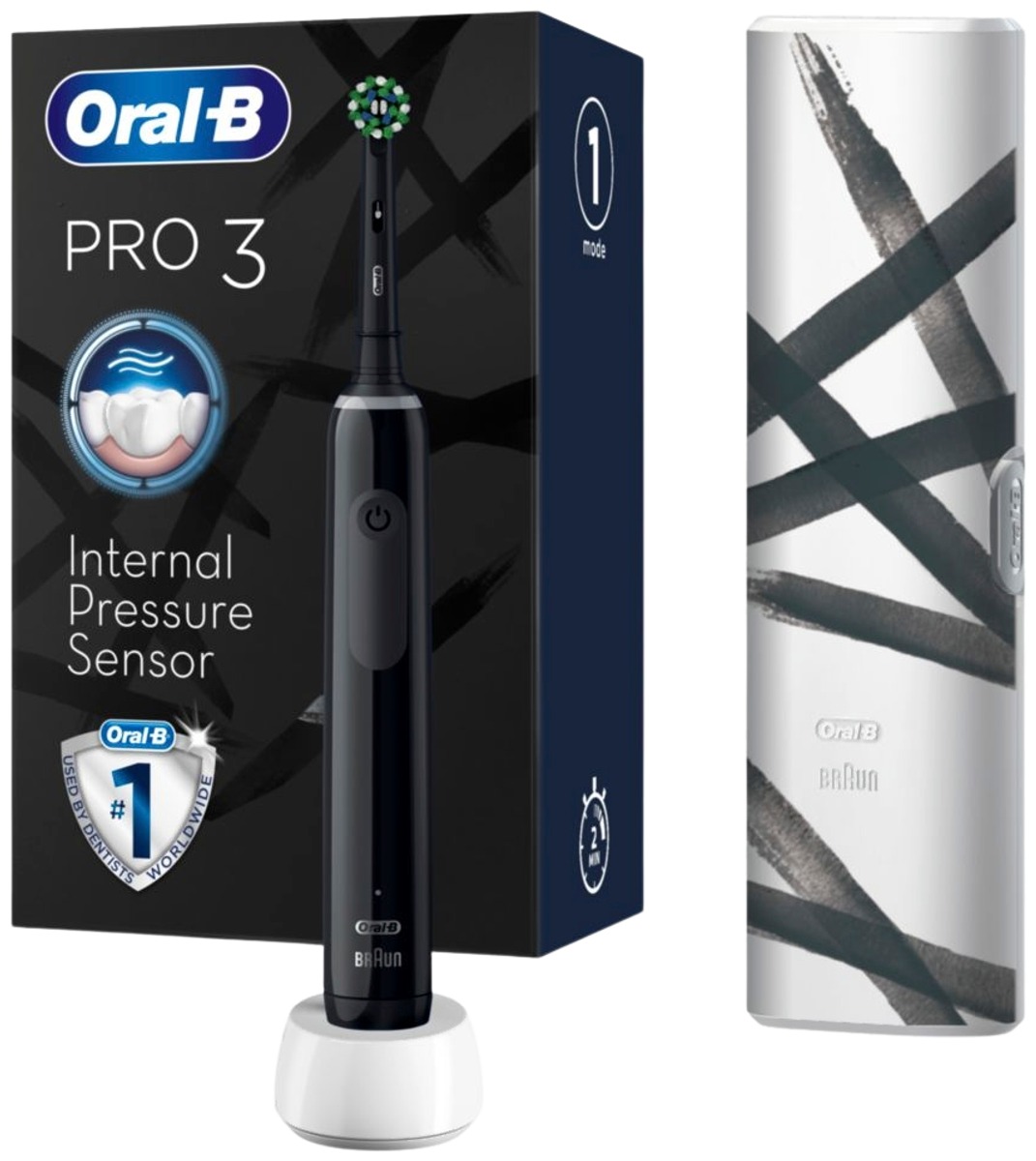 Oral-B Pro 3 3500 Black -Sähköhammasharja Braun-tekniikalla, 1 Matkakotelo, 1 Vaihtoharja