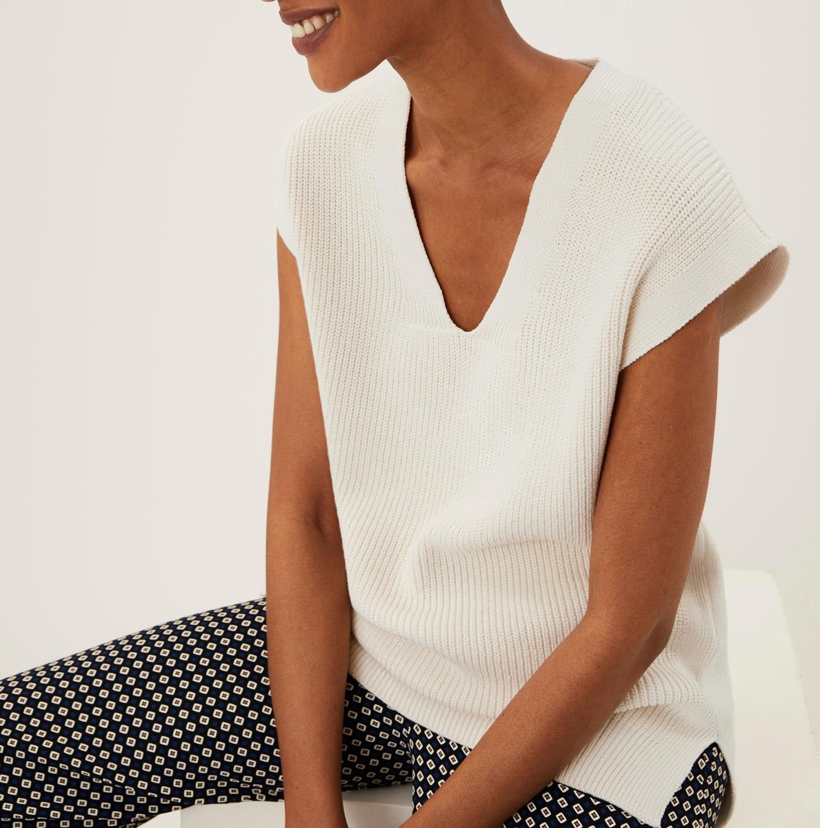Trendikäs neuleliivi V-pääntiellä.