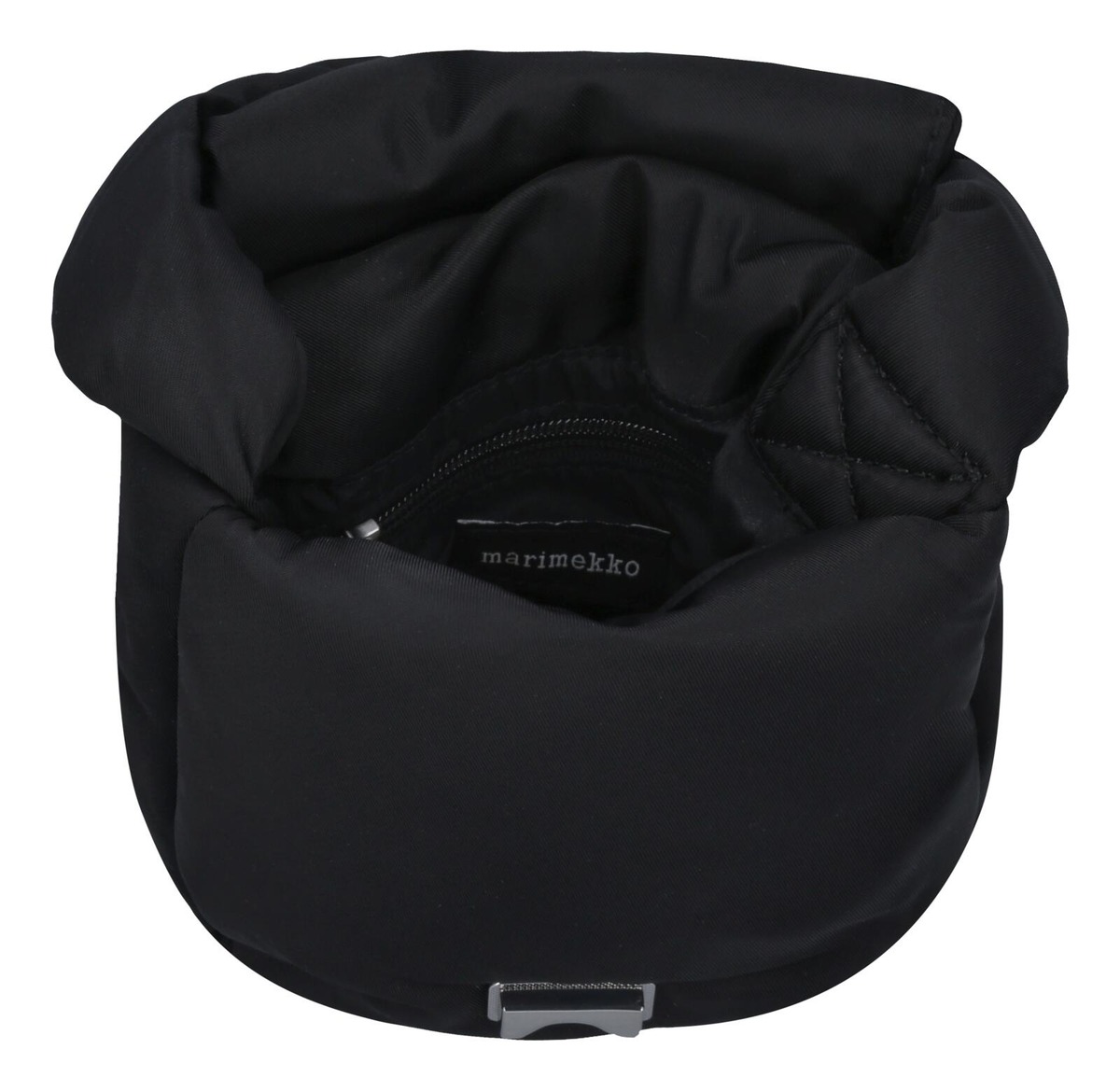 Pillow small olkalaukussa on pitkä topattu olkahihna, jonka voi solmia oikeaan pituuteen. Laukussa on etuläppä, joka sulkeutuu metalliklipsillä sekä yksi sisätasku. Marimekon M-kirjain on brodeerattu etupuolelle.Tuote on valmistettu 100-prosenttisesti kierrätetystä polyesterista.