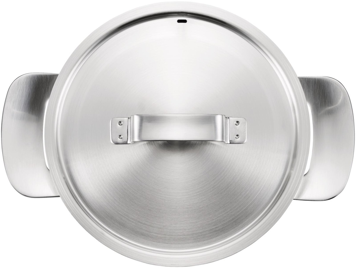 Erittäin kestävä kattila takaa erinomaisen ruoanlaittotuloksen. Sen paksu, kolmikerroksinen pohja kuumenee tasaisesti kaikenlaisilla liesillä. Kattilan sisäpuolelta löytyy mitta-asteikko, ja siinä on uuninkestävät kahvat ja höyryaukollinen kansi.