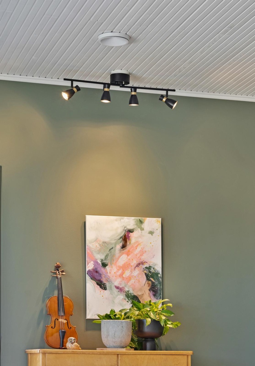 Elegantti 4-osainen kattospottivalaisin Zion luo tilaan reilusti valoa. Messingin väriset yksityiskohdat viimeistelevät valaisimen tyylin. Valaisin on helposti sijoitettavissa eteiseen, keittiöön tai olohuoneeseen. Valon voi levittää koko huoneeseen tai suunnata korostamaan tauluja tai tuomaan valo esimerkiksi lukunurkkaukseen. Valaisin varret käännettävissä. Valaisin on katosta noin 20 cm ja leveydeltään 72 cm
