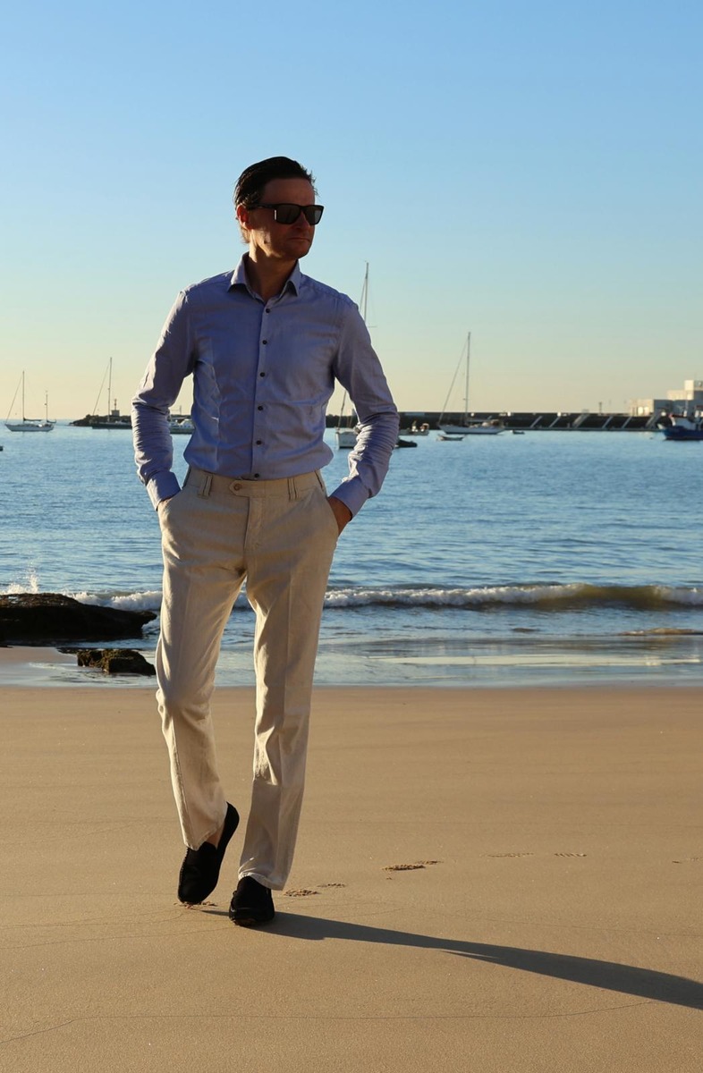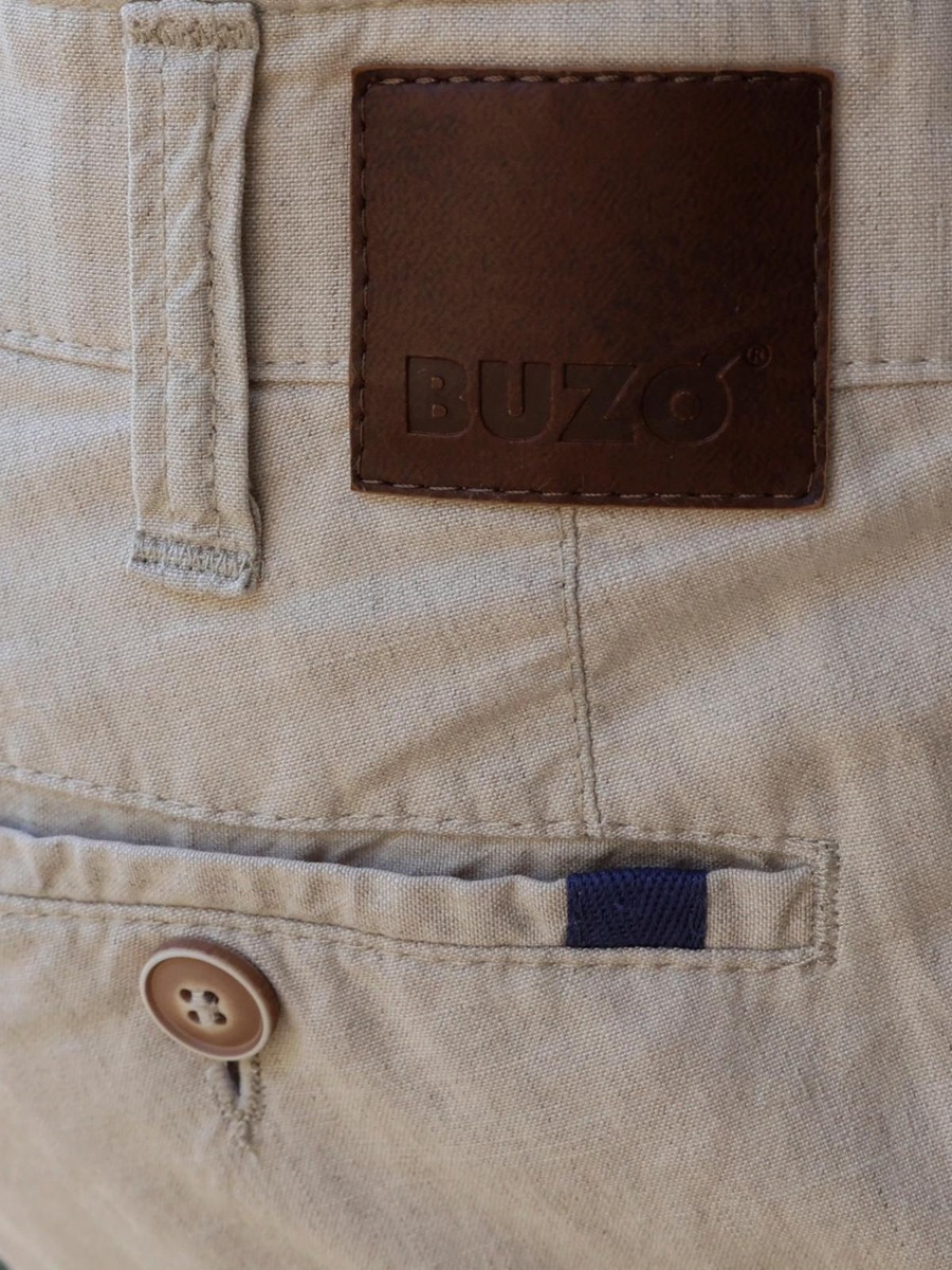 Klassiset Denes 7073 housut on valmistettu joustavasta pellava-puuvilla sekoitekankaasta. Housujen vyötärön korkeus on normaali ja lahkeen malli on suora. Denes 7073 housuissa on joustovyötärö, joka mukautuu käyttäjän tarpeiden mukaan. Housuissa on kaksi takataskua ja pystytaskut edessä. Housuja on saatavilla normaalilla C-mitoituksella sekä tanakalla D-mitoituksella. D-mitoituksessa on 3 cm lyhyempi lahje ja vyötäröllä on enemmän tilaa. Buzo tuotteiden suunnittelussa on huomioitu suomalaisen miehen vartalomitoitus, laadukkaat materiaalit, viimeistely sekä skandinaavinen tyyli. Buzo tuotteille on myönnetty Design from Finland -merkki.