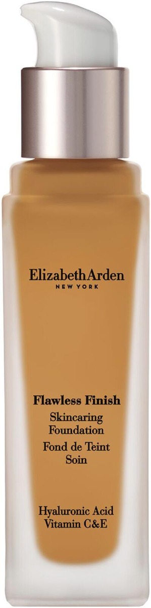 Ihoa hoitava ja hellivä Elizabeth Arden Flawless Finish Liquid Foundation -meikkivoide sisältää mm. hyaluronihappoa sekä C- ja E-vitamiinia, minkä ansiosta iho sekä tuntuu että näyttää virheettömän raikkaalta ja miellyttävältä jopa 24 tunnin ajan. Luonnollisen kevyt ja pitkäkestoinen meikkivoide kestää sekä kuumuutta että kosteutta, ehkäisee ihon kiiltoa eikä asetu ihon juonteisiin eikä huokosiin. Meikkivoide heleyttää ja kirkastaa ihoa sekä saa ihon tuntumaan nuorekkaan kimmoisalta, kosteutetulta ja hehkuvalta.