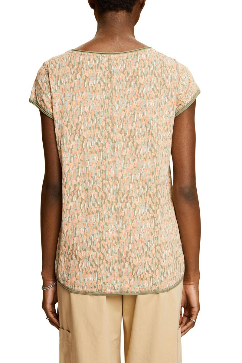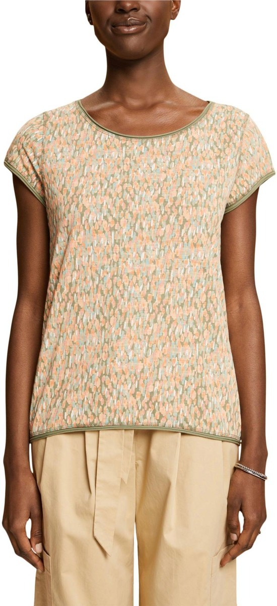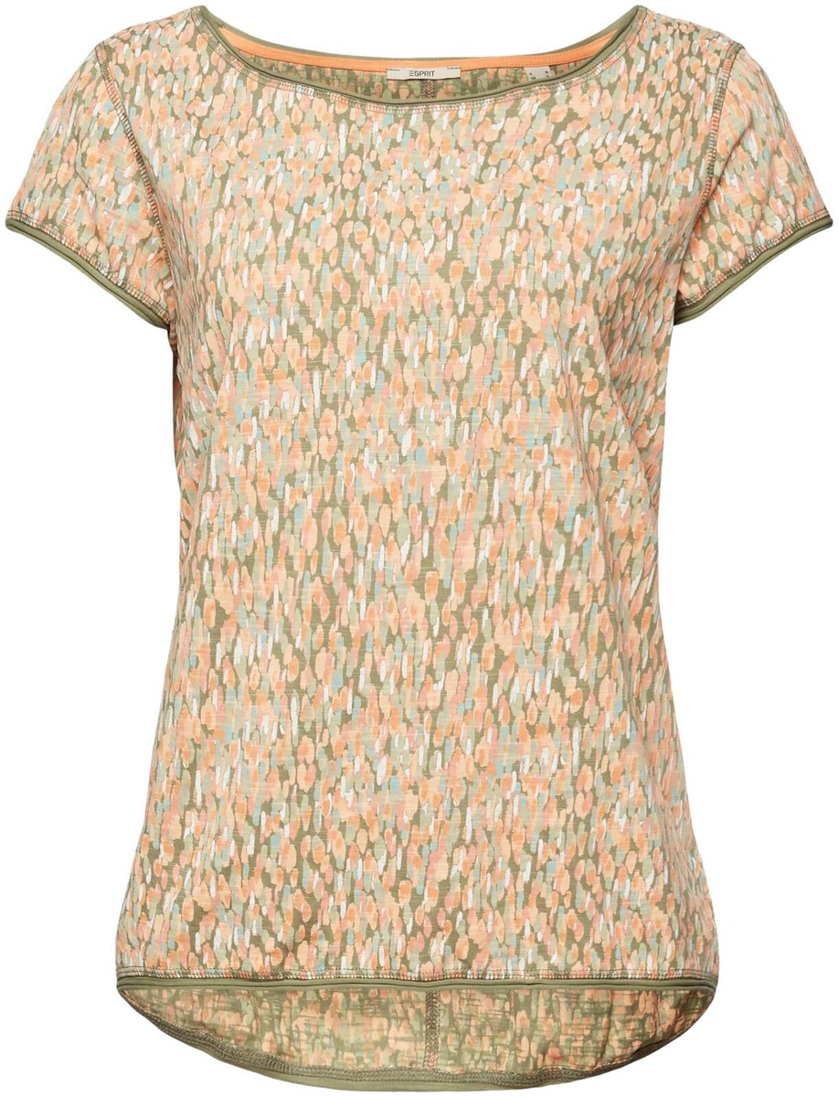 Kuviollinen lyhythihainen t-paita pyöreällä pääntiellä. Pehmeästä puuvillasta valmistetussa paidassa on takaa pidempi helma.