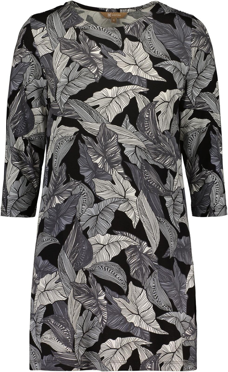 Printtikuosinen trikootunika pyöreällä pääntiellä ja 3/4 pitusilla hihoilla. Helma hieman alaspäin levenevä. Koossa M olka-helma pituus noin 79 cm ja rinnanympärys noin 98 cm. Materiaali joustavaa viskoosi-elastaani trikoota.