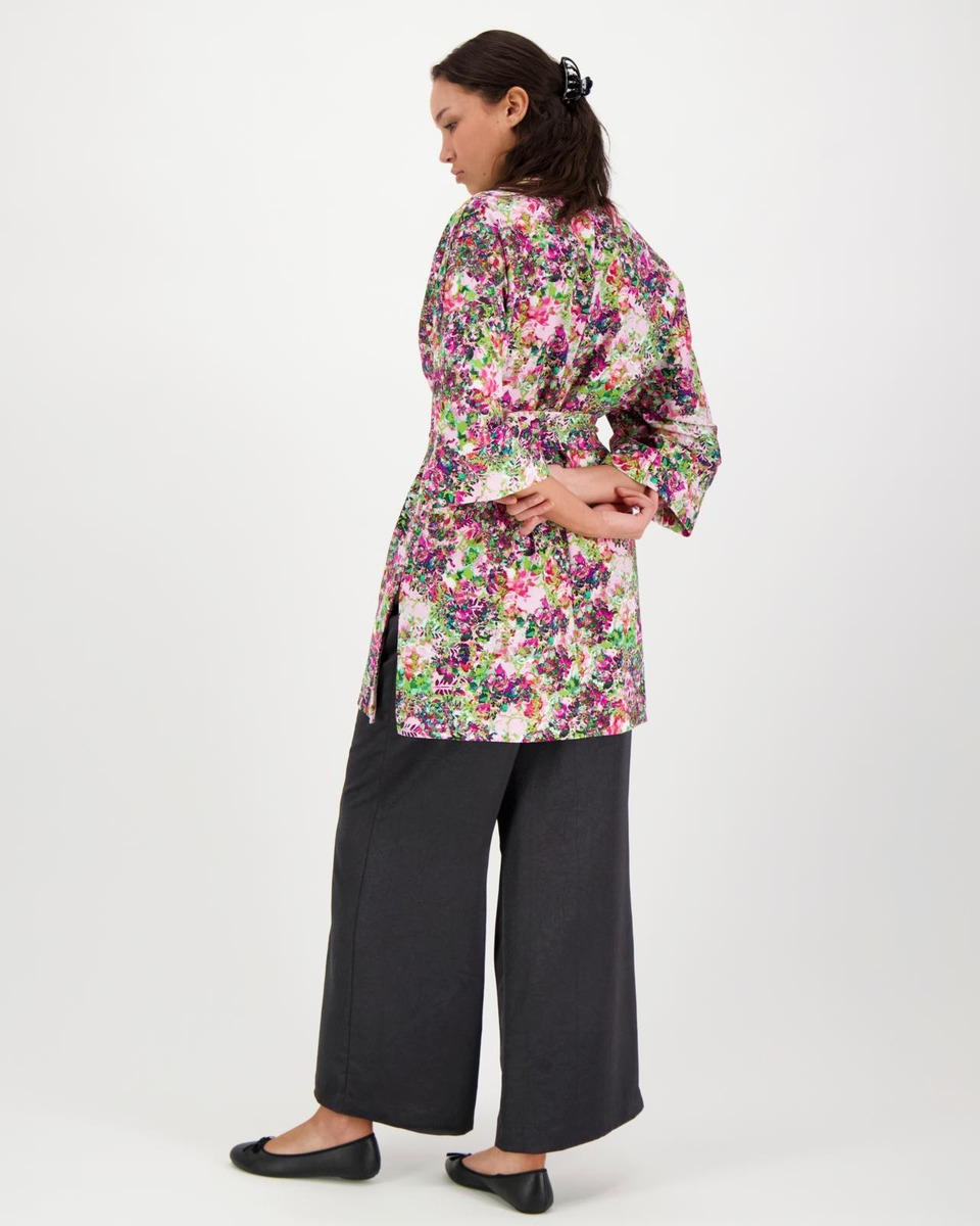 Trikookimono, jossa halkiot helmassa ja 3/4 pituiset hihat.