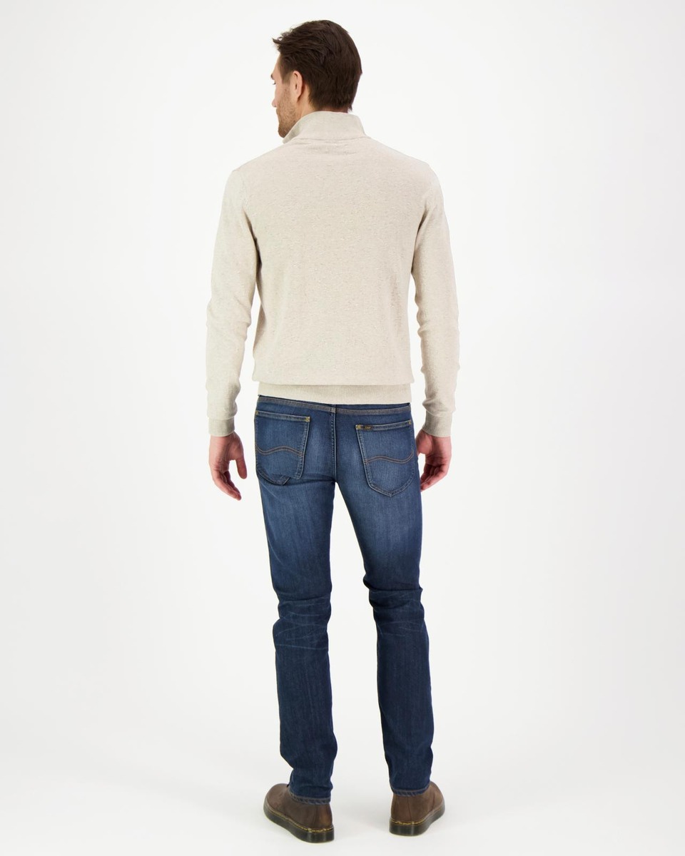 Vetoketjullinen neule, jossa pystykaulus.