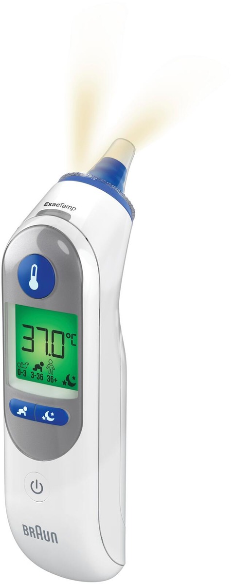 -Braunin infrapunakorvalämpömittari iän mukaan säädettävällä kuumeohjauksella, sopii koko perheelle.
