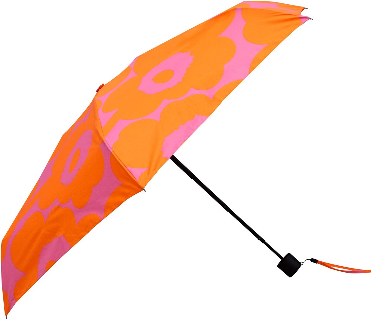 Erittäin kevyt Mini Manual -sateenvarjo on valmistettu kierrätetystä polyesterista ja siinä on Mini Unikko-kuosi. Kompaktin kokoisessa sateenvarjossa on manuaalinen teleskooppivarsi ja se mahtuu helposti laukkuun kuin laukkuun. Luovuutta ja rohkeutta symboloiva Unikko syntyi aikana, jolloin Marimekon kuviomaailmaan ei juuri kuulunut kukkia. Maija Isolaa kukka-aihe kuitenkin kiinnosti, ja hän päätti suunnitella kokonaisen sarjan uudenlaisia vahvoja kukkakuoseja.