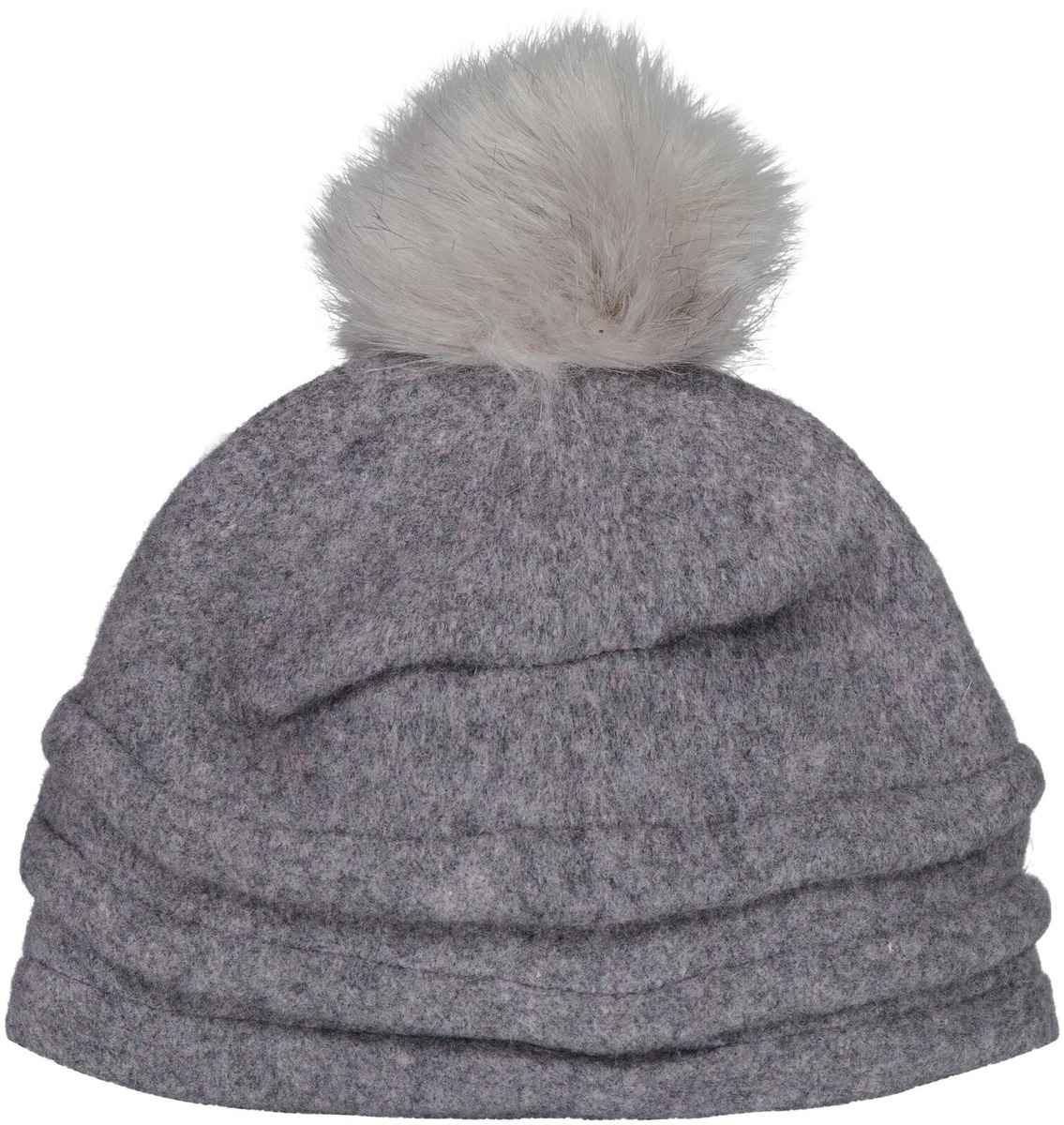 Rento ja lämmin hattu huovutettua villaa. Tekoturkistupsu. Yksi koko.