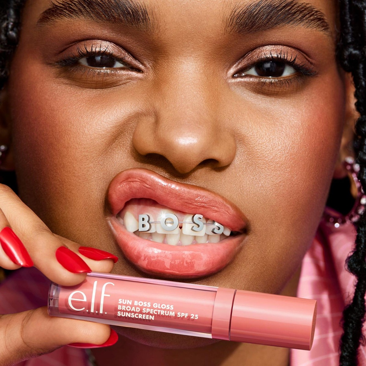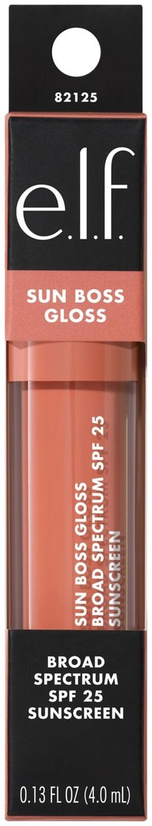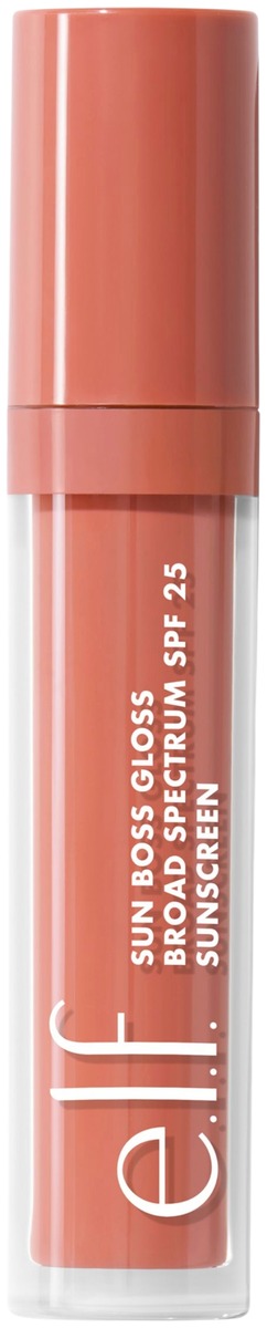 Suojaa huulet e.l.f.:n Cosmetics Sun Boss Gloss! Tämä huulia vahvistava sävytetty huulikiilto tarjoaa mineraaliaurinkosuojan SPF 25, kerrostettavan värin ja kiiltävän lopputuloksen.