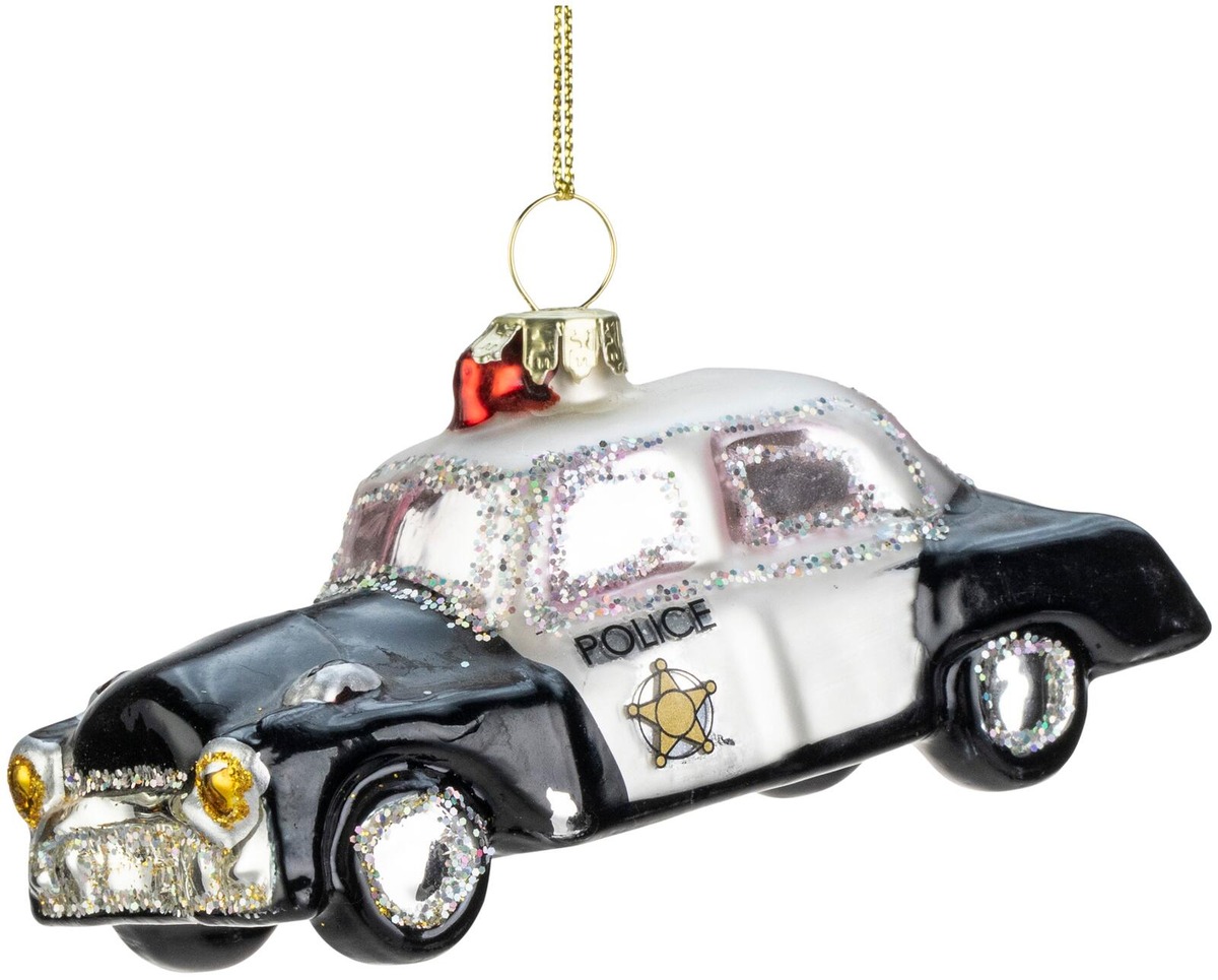 Weiste lasipoliisiauto 10x5cm mustavalkoinen
