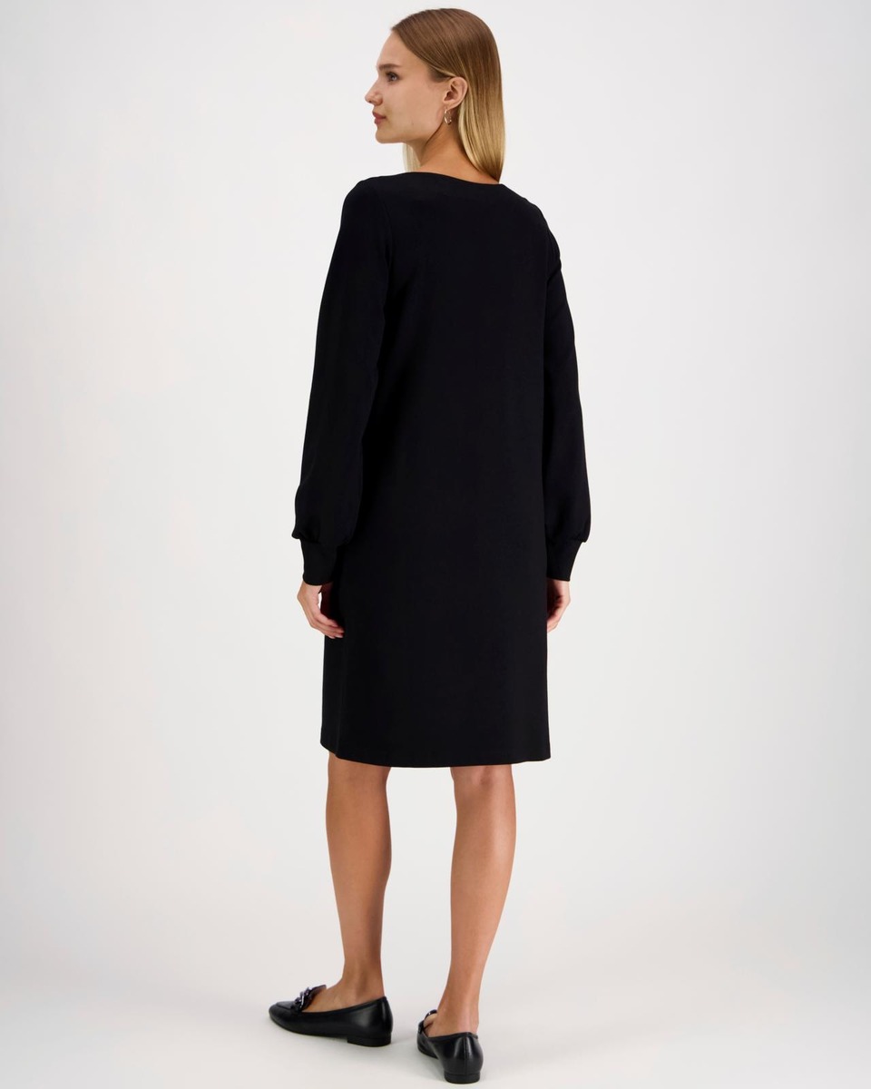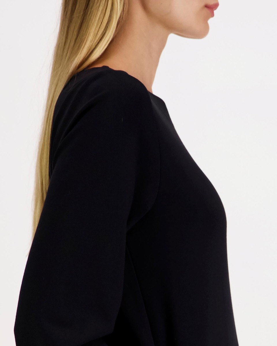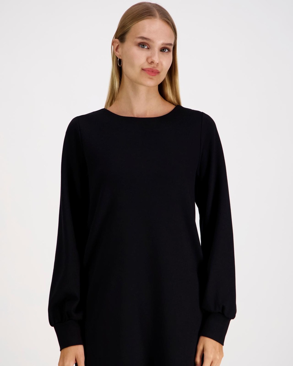 Naisten yksivärinen Arkki-mekko. Mekossa on ovaali pääntie, joka on huoliteltu alavaralla. A-linjaisessa mekossa on sivutaskut ja suora helma. Täyspitkät hihat poimuttuvat kauniisti hihansuun leveän kaksinkertaisen kaitaleen yläpuolelle. Mekon pituus koossa 38 on noin 95 cm. Materiaali on laadukasta ja miellyttävän tuntuista viskoosi-polyamidi-elastaani-neulosta. Viskoosineulos on sähköistymätöntä ja helppohoitoista. Materiaalille on ominaista 3-5% kutistuminen ensimmäisessä pesussa.
