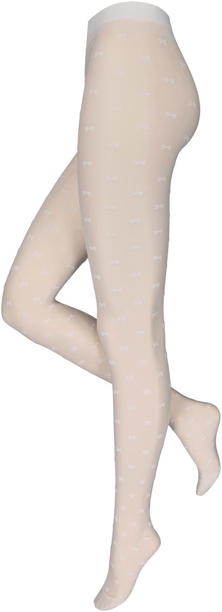Trendikkäät 20 denierin sukkahousut. Moderni ja leikkisä rusettikuvio vangitsee katseen ja viimeistelee muodikkaan asusi. Rajaton housusosa. Kärkivahvike. Kierrätettyä polyamidia.