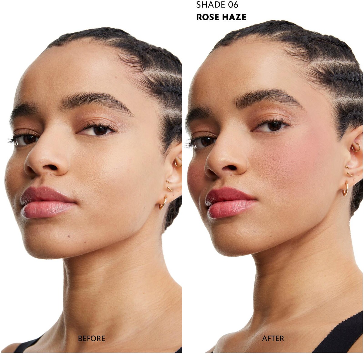 Kohottava efekti: levitä poskipunaa poskipäiden yläosaan, häivytä ylöspäin ja taakse kohti ohimoita.