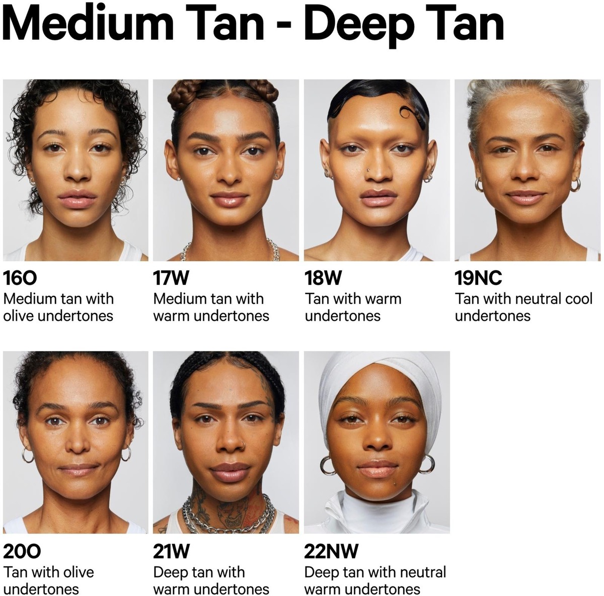 - Använd den uppbyggbara formulan över hela ansiktet efter behov för en naturlig finish.