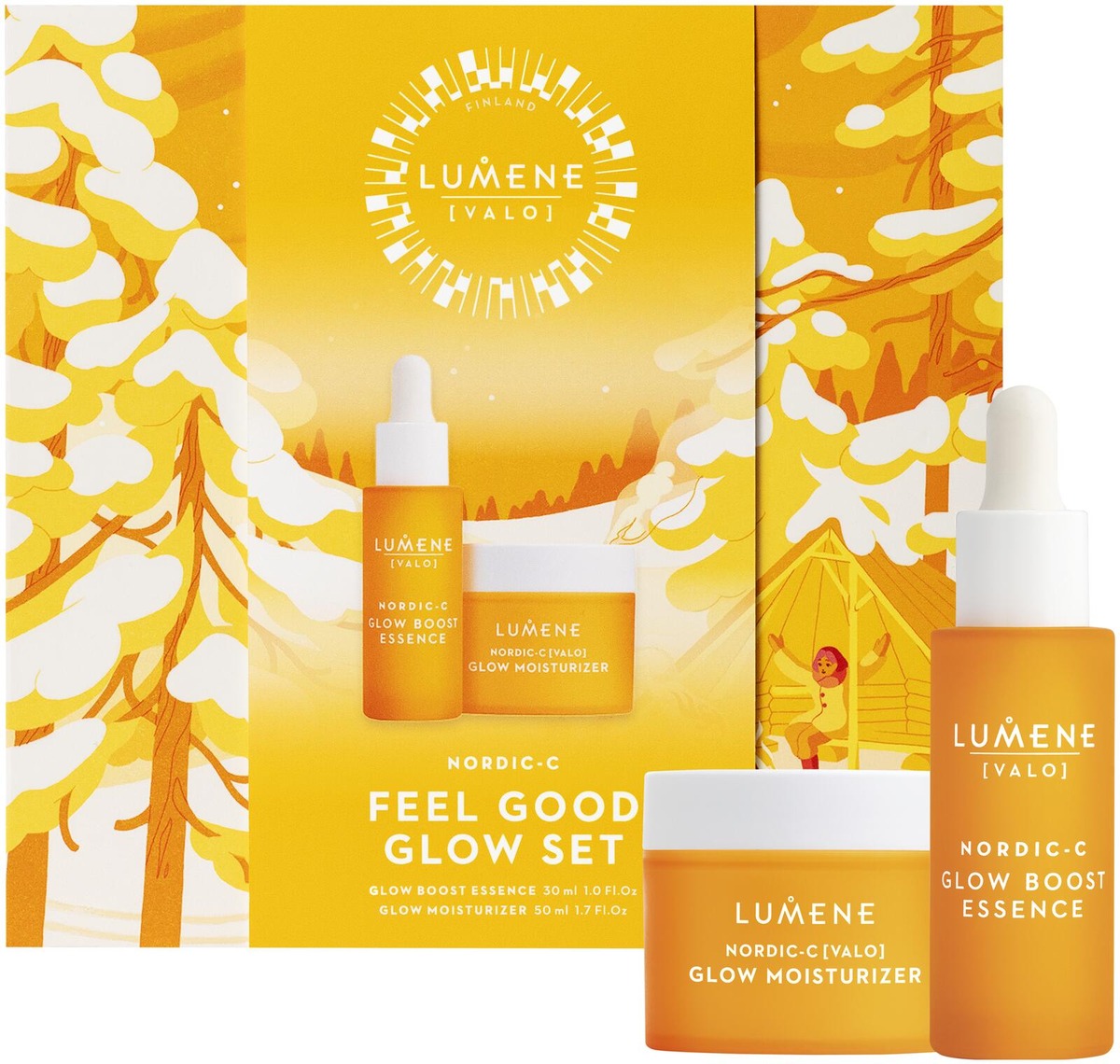 Nauti tästä ihon hehkua lisäävästä duosta. Ihoasi energisoivat, C-vitamiinia ja antioksidanttipitoista pohjoista lakkaa sisältävät suosikkituotteemme jättävät iholle luonnollisen hehkun. Pakkaus sisältää: Kirkastava hyaluronitiiviste 30 ml, Heleyttävä kosteusvoide 50 ml.