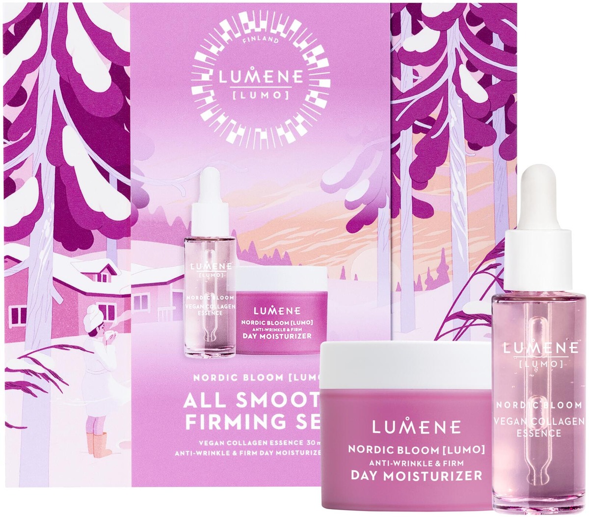 Nauti tästä kiinteyttävästä duosta, joka tekee ihostasi sileämmän ja terveemmän näköisen. Pohjoisten marjojen pre-retinoli-yhdistettä ja vegaanista kollageenia sisältävät suosikkituotteemme saavat ihon näyttämään kiinteämmältä ja nuorekkaammalta. Pakkaus sisältää: Kimmoisuutta lisäävä kollageeniseerumi 30 ml, Silottava & kiinteyttävä päivävoide 50 ml.