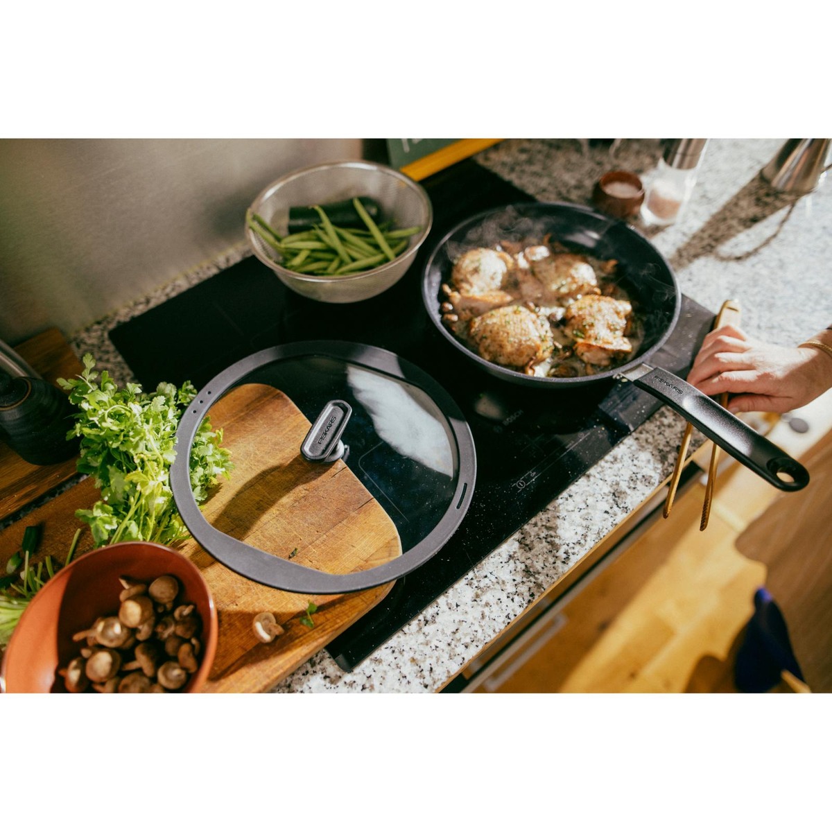 • Sopii kaikkiin Fiskarsin 28 cm paistinpannuihin, paistokasareihin ja wokkipannuihin