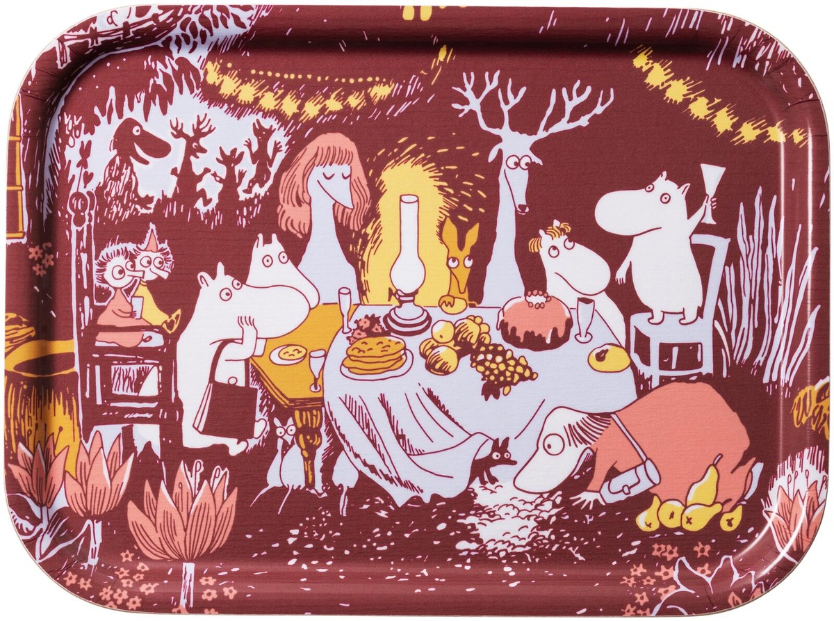 Tuo taikaa joulun juhlakauteen kauniilla ja kätevällä muumitarjottimella! Muumi 80 -juhlavuoden Juhlan aika -kokoelma juhlistaa yhteenkuuluvuutta ja ystävyyttä. Moomin Arabia tarjotin 27x20cm, Juhlan aika