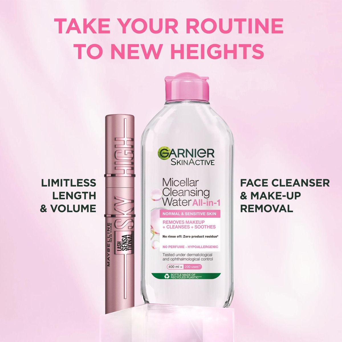 • Lahjapakkaus sisältää Maybelline maskaran ja Garnier Micellar -puhdistusveden
