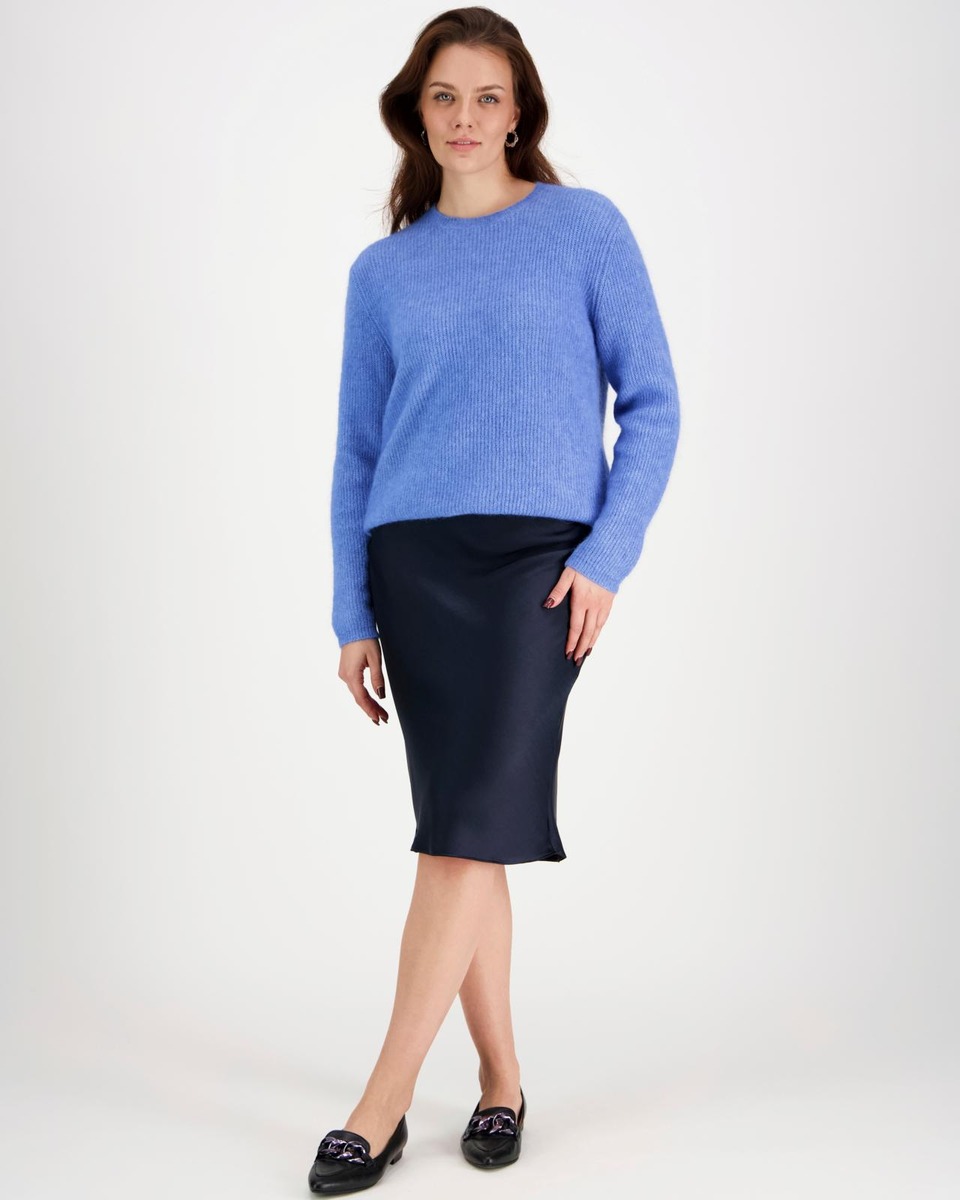 Aventura lämmin pitkähihainen neulepusero on valmistettu pehmeästä ja laadukkaasta mohairsekoitteesta. Koossa M rinnanympärys noin 104 cm, pituus olalta helmaan noin 60 cm.