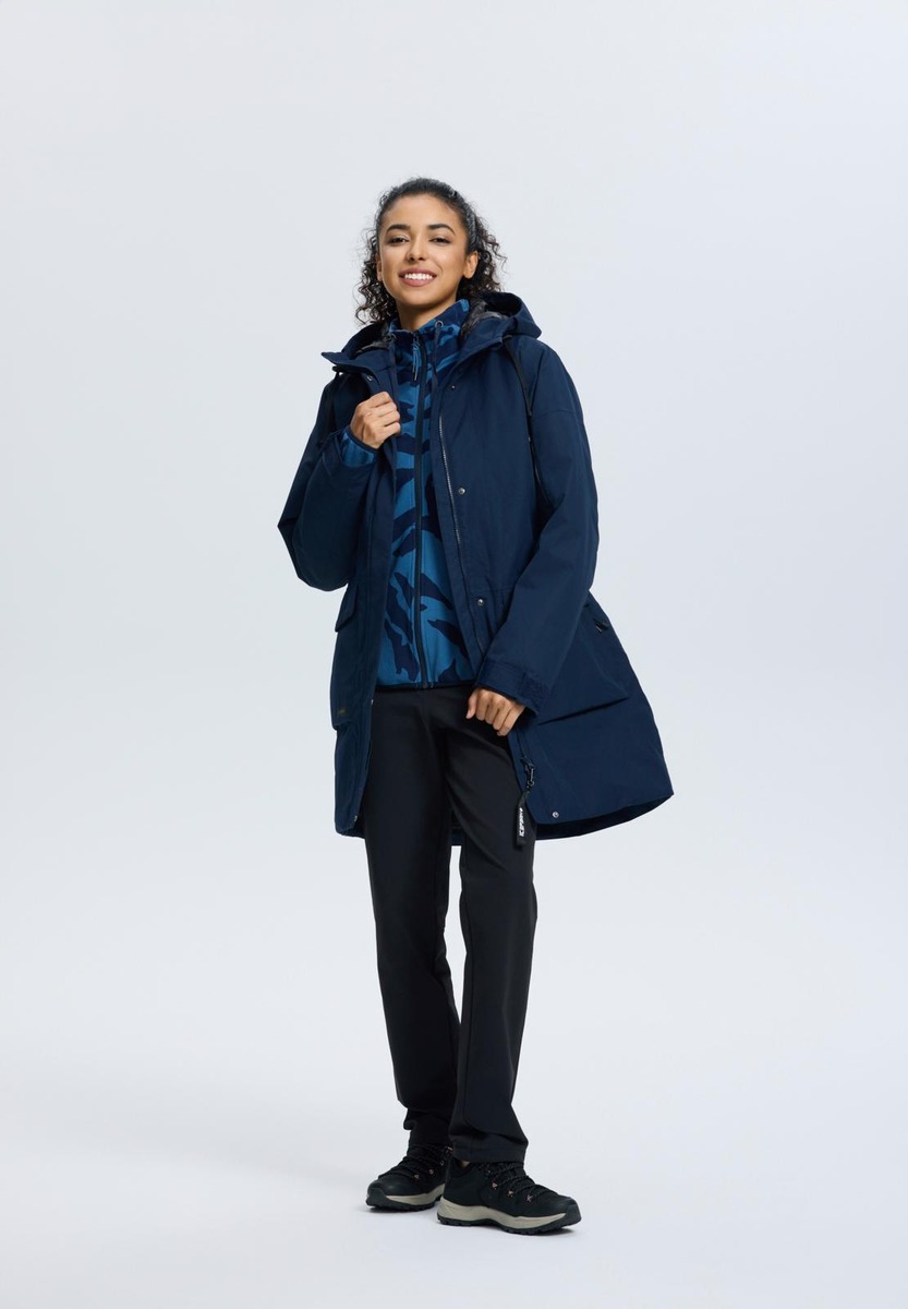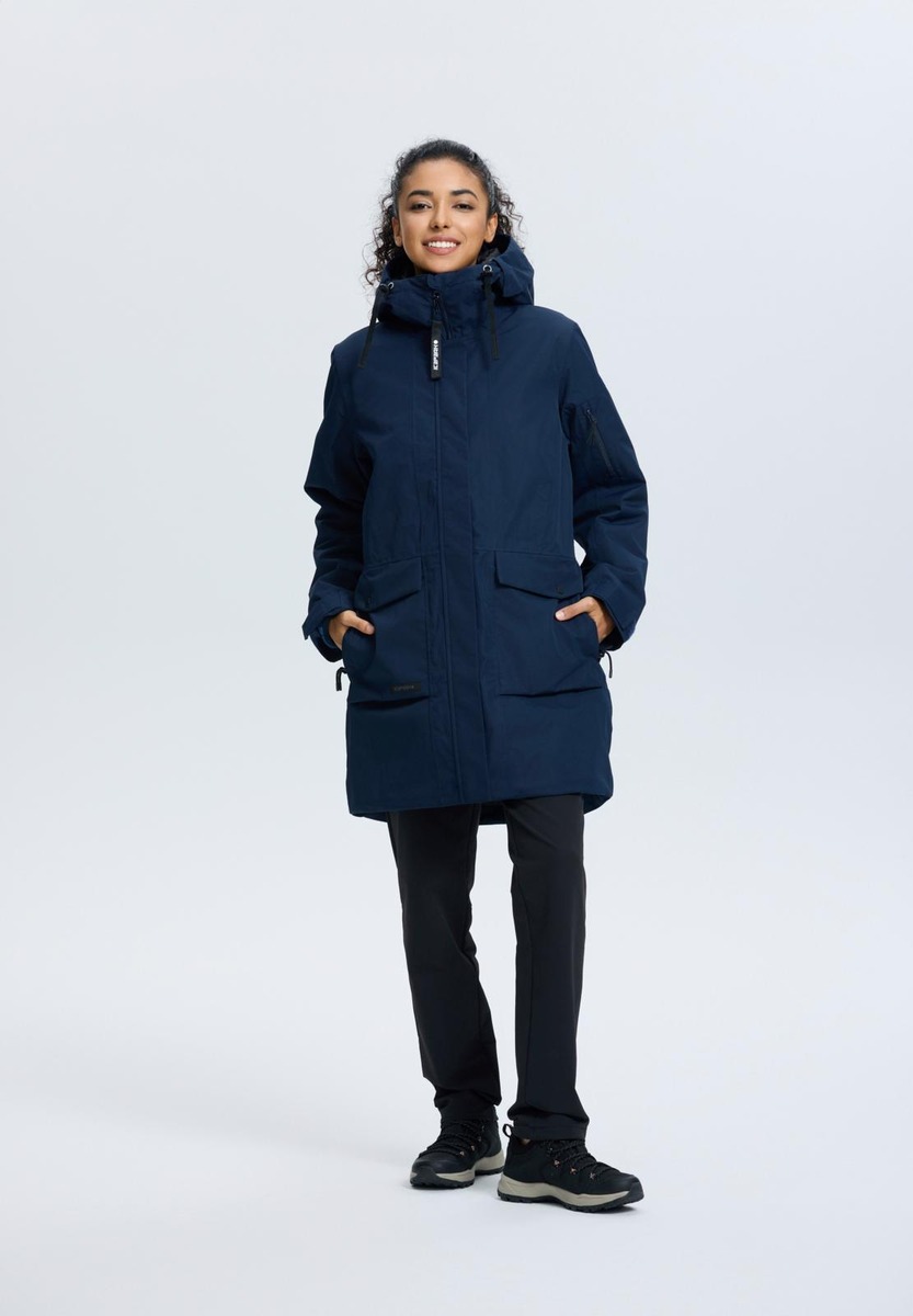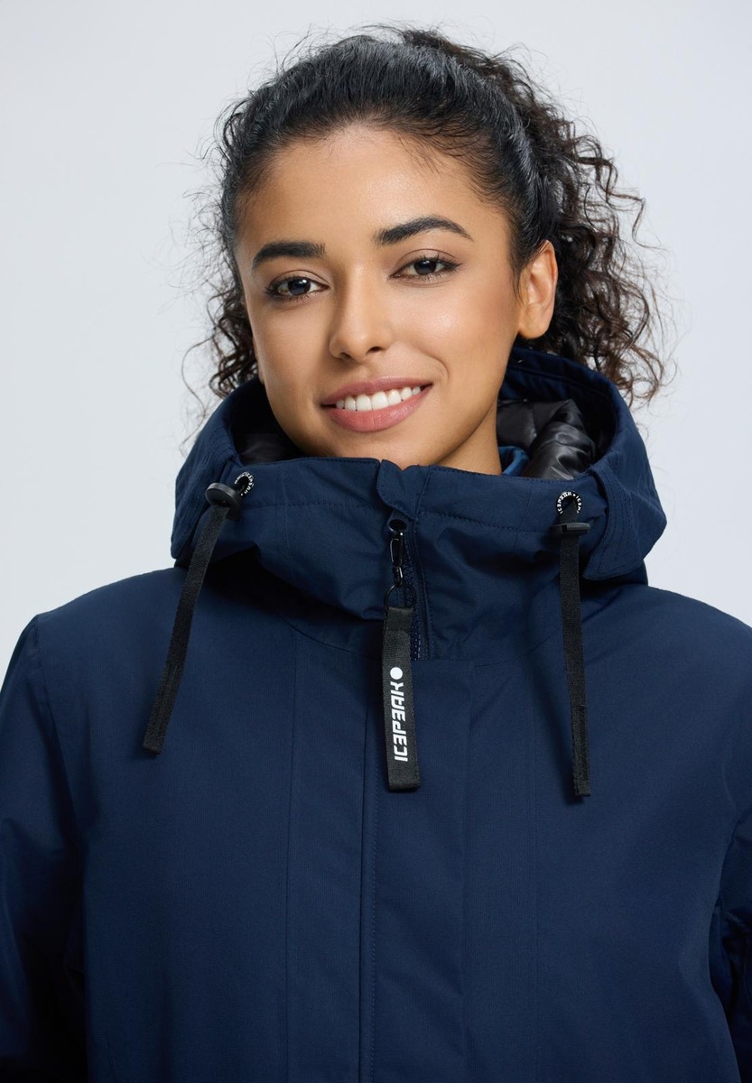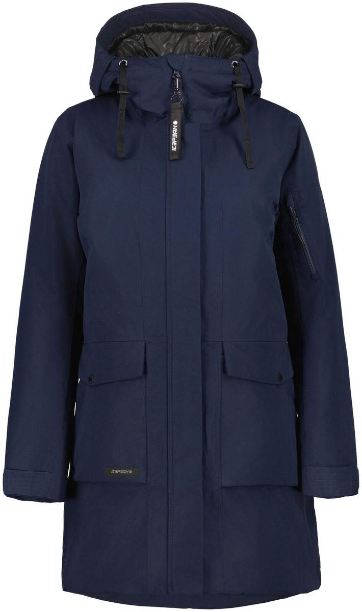 Icepeak parka naisille. Normaali mitoitus. Hupussa kiristysnyörit. Kiinteä huppu. Säädettävät hihansuut. Kaksi läppätaskua edessä. Kaksi vetoketjullista etutaskua. Vetoketjullinen sisätasku. Vetoketjullinen hihatasku. Kaksisuuntainen vetoketju edessä. Vyötärön takaosa säädettävissä. Pidennetty ja suojaava takahelma. Logomerkki. Vesipilari 10 000 mm. Hengittävyys 5 000 g\m2\24h. A.W.S. ACTIVE -tuotteen suunnittelussa on kiinnitetty erityistä huomiota toiminnallisuuteen ja mukavuuteen, joten tuote sopii sekä aktiiviseen että rentoon liikkumiseen. Kaikki saumat on teipattu, mikä tekee tuotteesta täysin vedenpitävän. Valmistettu kaksikerroksisesta kankaasta, jossa vedenpitävä kalvo on yhdistetty toiminnalliseen materiaaliin. Kankaan pinta on käsitelty vettä hylkiväksi. Tuulenpitävä materiaali pitää lämpimänä. Kevyt toppaus. Tikattu vuori. Takapituus (koko 38): 90cm.