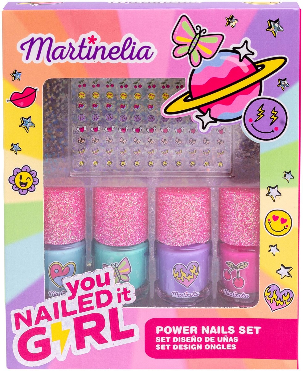 Martinelia super girl power nails set värikäs kynsisetti, jossa on 4 kynsilakkaa ja tarroja – luovaa kynsitaidetta ja supervoimaa jokaiselle päivälle.