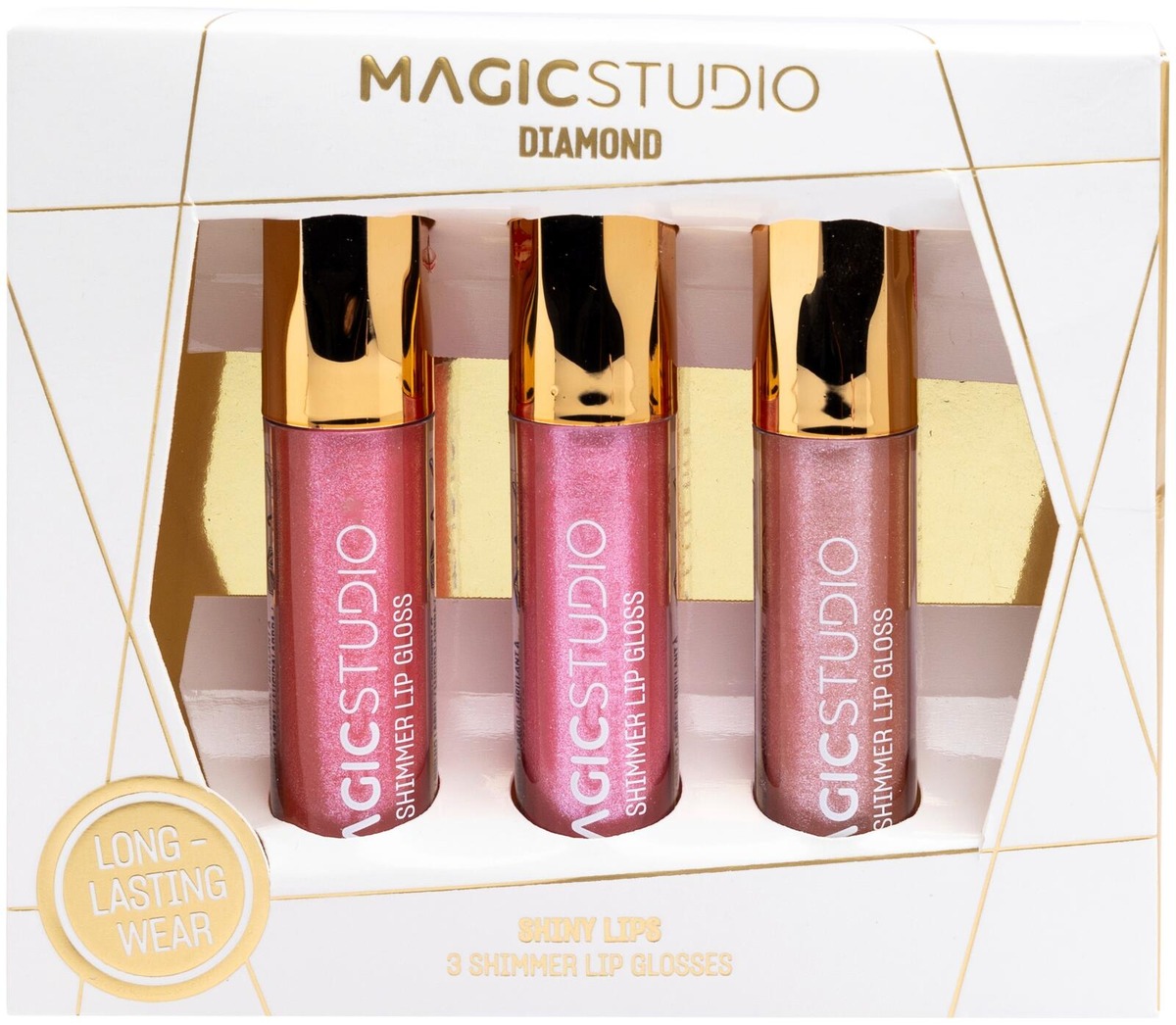 Magic Studio Diamond Lips lahjapakkaus. Kolmen huulikiillon lahjapakkaus, joka tuo huulille upean kiillon ja hohtavan glamourin. Ei tahmaa, vain pehmeä, kosteuttava ja säihkyvä lopputulos. Tyylikäs lahjaidea!