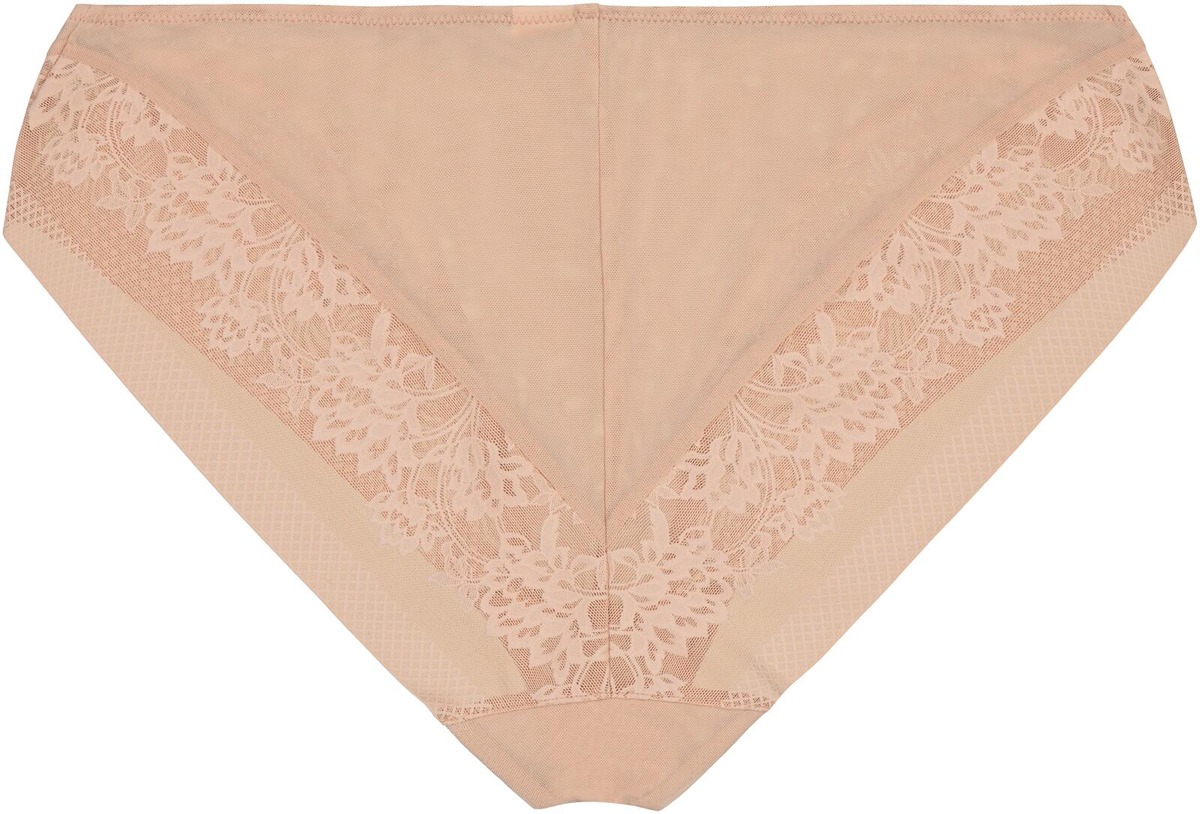 Elomi Nerina naisten alushousu. Korkea vyötärö. Lahkeensuissa on pehmeää ja joustavaa pitsiä. Puuvillavuorattu haaraosa.