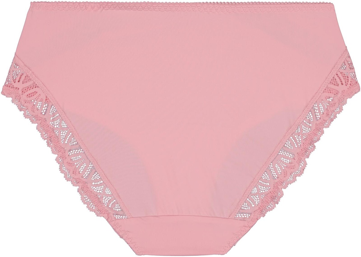 Naisellinen korkea alushousu upeilla pitsisillä yksityiskohdilla. Miellyttävä tuntu ja hyvä istuvuus. Kaunis roosan sävy, joka sopii moneen ihon sävyyn.