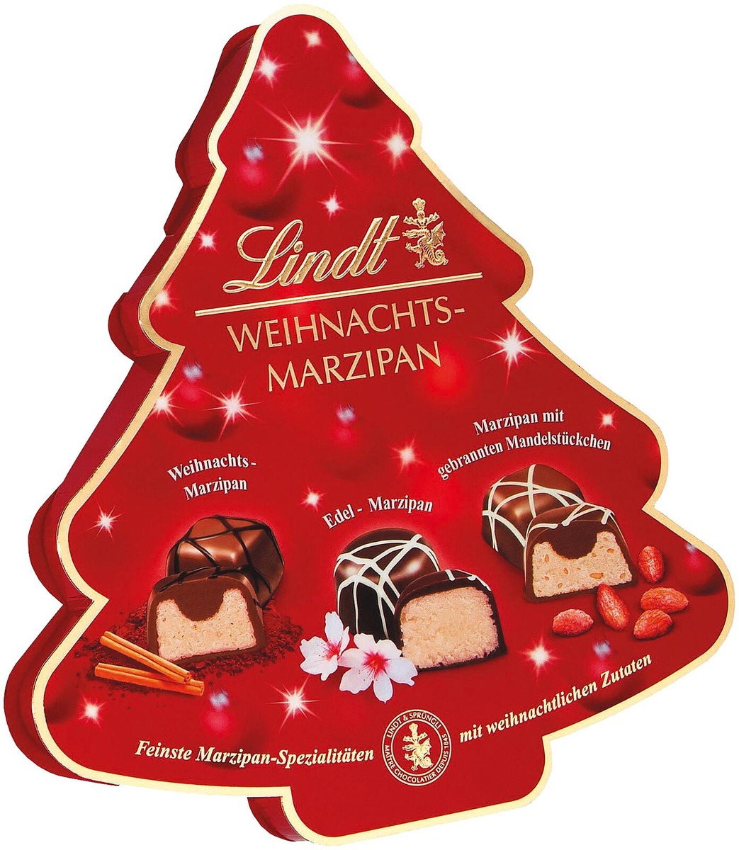 Herkullinen Lindt-marsipaanisuklaa sopii täydellisesti jouluun. Jouluisessa rasiassa on kolme eri makua marsipaanikonvehteja: joulumarsipaani, hieno marsipaani ja marsipaani paahdetuilla mantelipaloilla. Koe ylellinen suklaaelämys, kun suklaa sulaa suussasi. Lindt marsipaanikonvehdit ovat täydellinen lahja läheisillesi tänä jouluna! Lindt marsipaanikonvehdit on valmistettu korkealaatuisimmista raaka-aineista, kuten aidoista mantelipaloista, ja maustettu täyteläisellä kanelilla. Tämä juhlava herkku saa kaikki hymyilemään.
