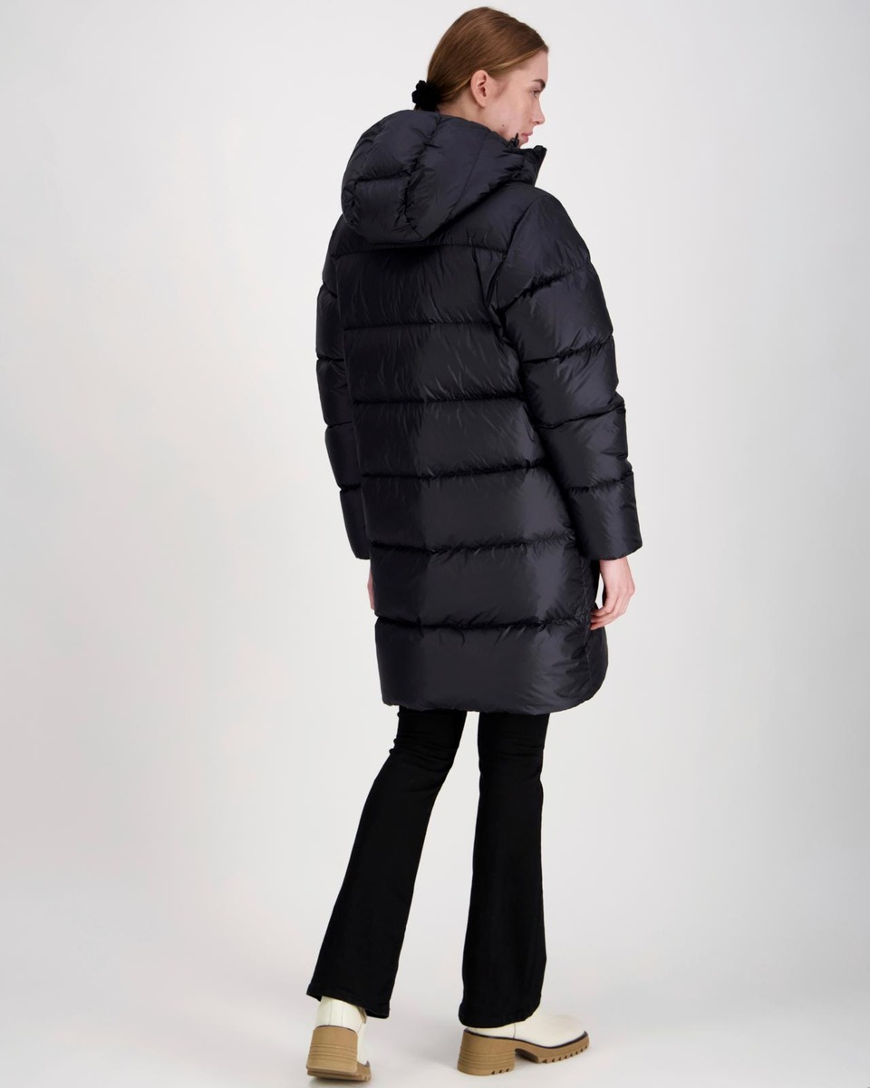 Silvia on erittäin kevyt ja lämmin talvisään untuvatakki, jossa on suojaava huppu ja säädettävä helma. Takin voi pakata omaan vetoketjulliseen sisätaskuun ja näin sitä voi kuljettaa mukana esimerkiksi taukotakkina. Silvia-takki on valmistettu kestävästä ja kevyestä materiaalista, joka hylkii vettä ja pitää tuulta. Takin selänpituus M koossa on 94 cm. Takin täyte on 100-prosenttista vastuullisesti tuotettua untuvaa.