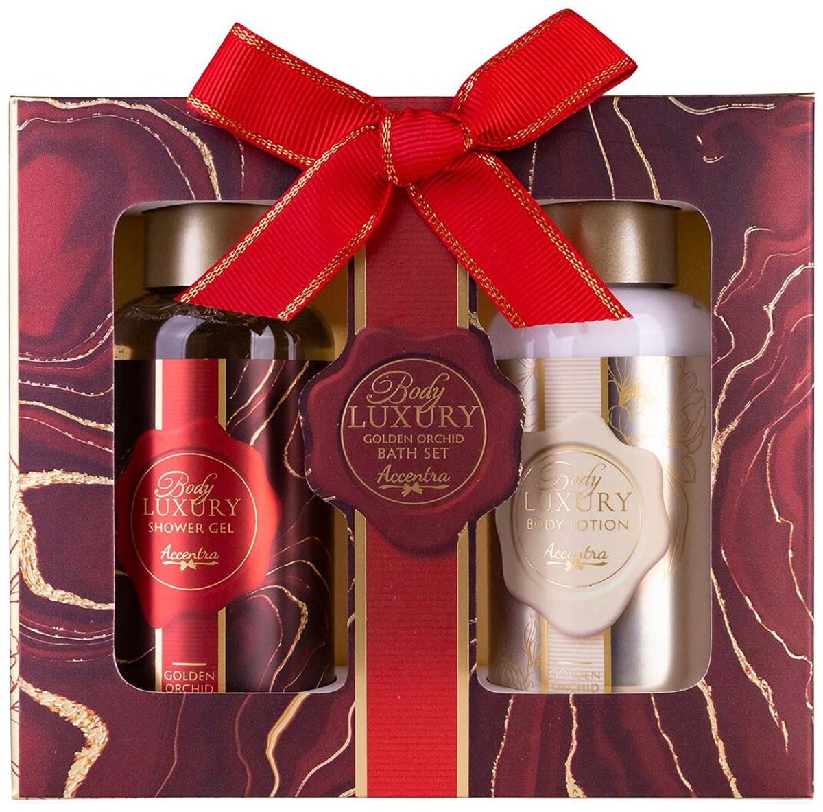 Accentra Body Luxury Golden Orchid kylpysetti, joka sisältää suihkusaippuan 100ml ja vartalovoiteen 100ml