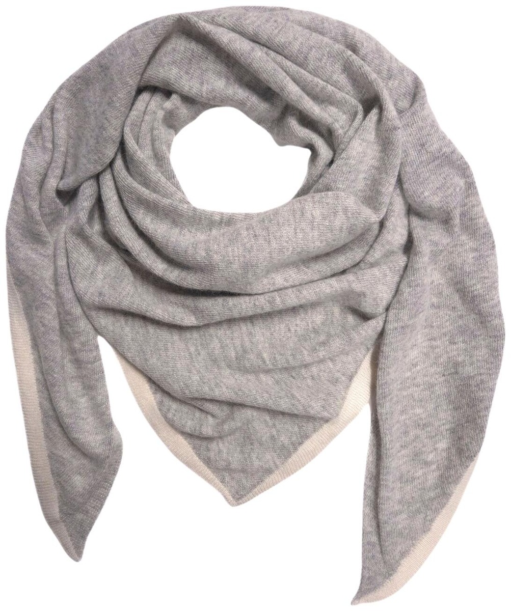 Monikäyttöinen kolmiohuivi angora-sekoitetta. Pehmeä neulehuivi on mukava kietoa kaulaan tai pitää harteilla lämmikkeenä. Reunoissa ympäri kiertävä tehosteraita. Koko noin 85x190 cm.