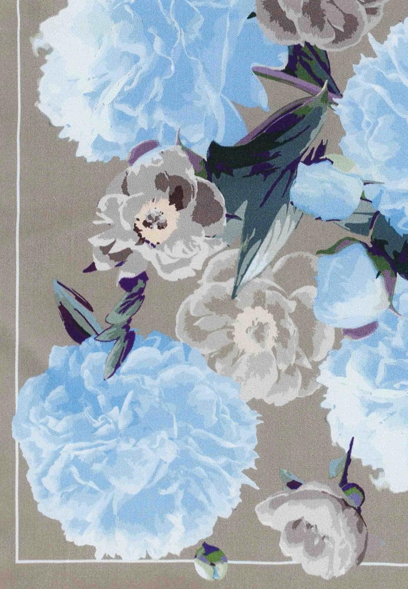Ylellinen Italiassa valmistettu silkkihuivi jonka voi solmia monella eri tavalla. Runsas näyttävä kukkakuosi. Koko 70x70 cm.