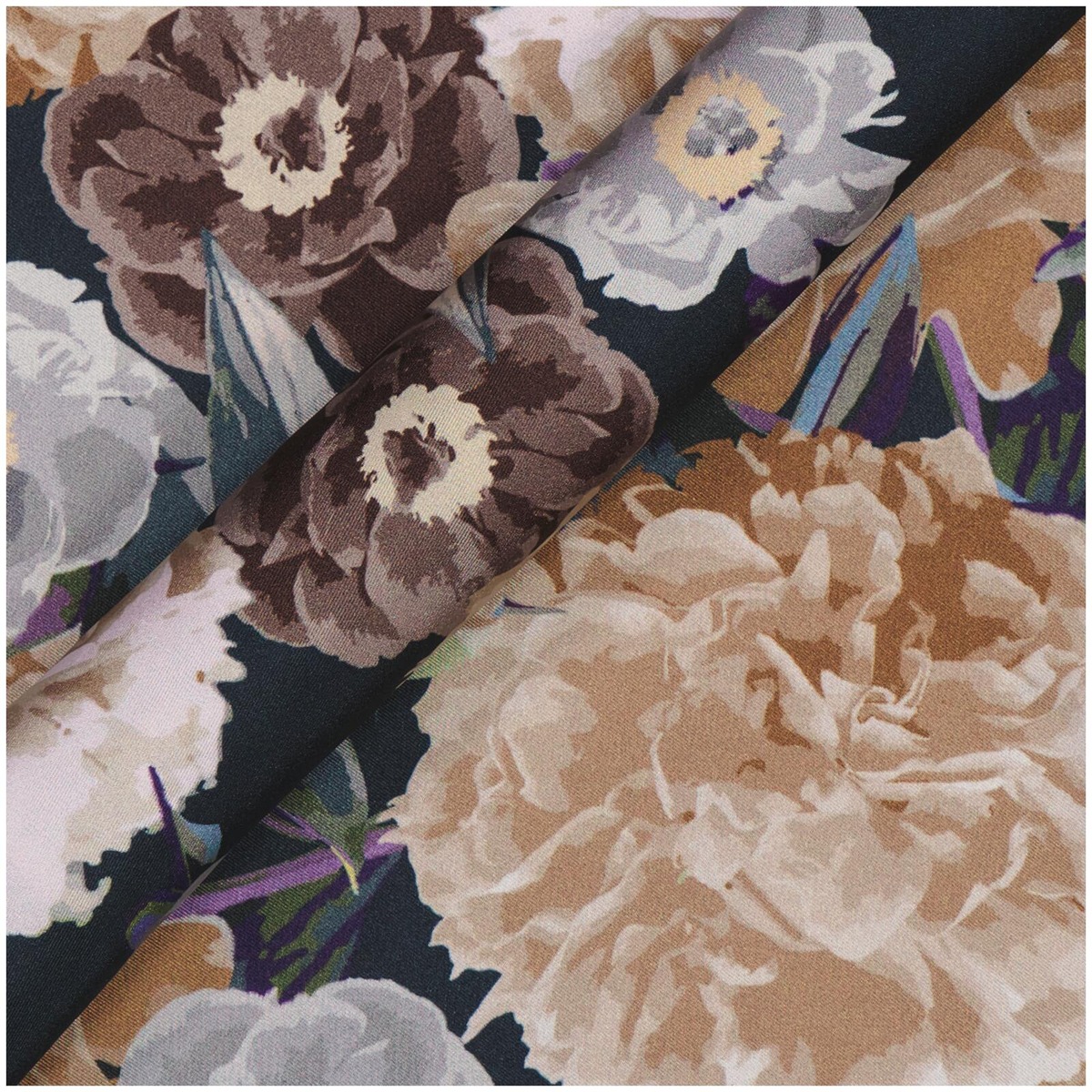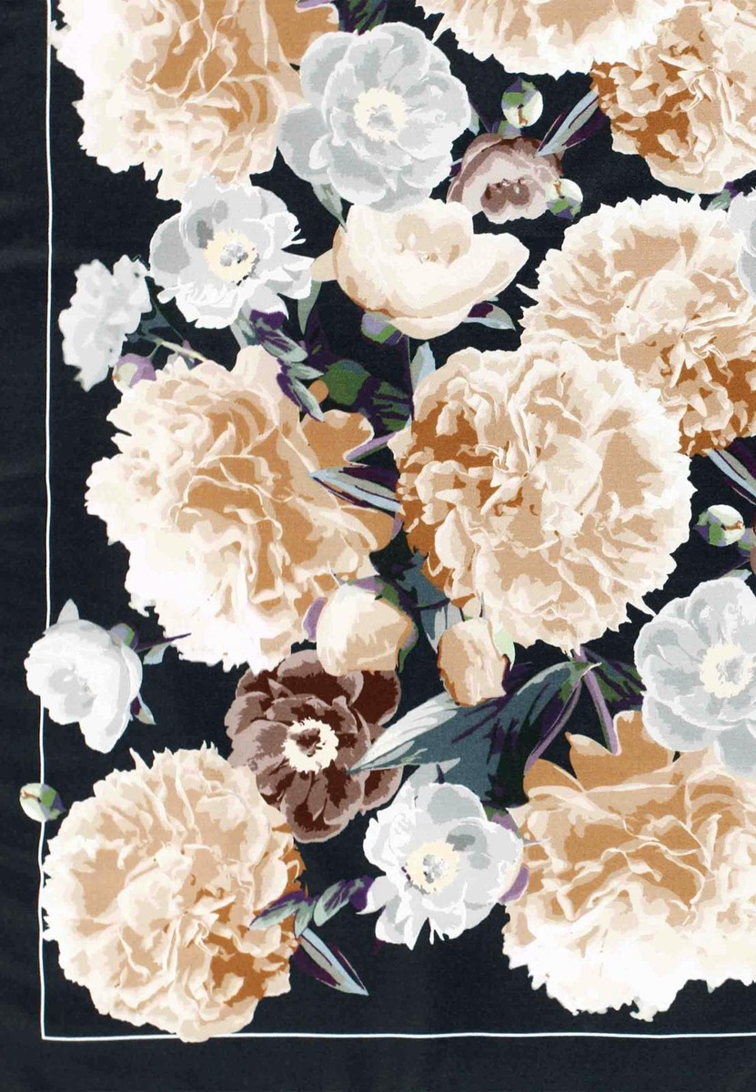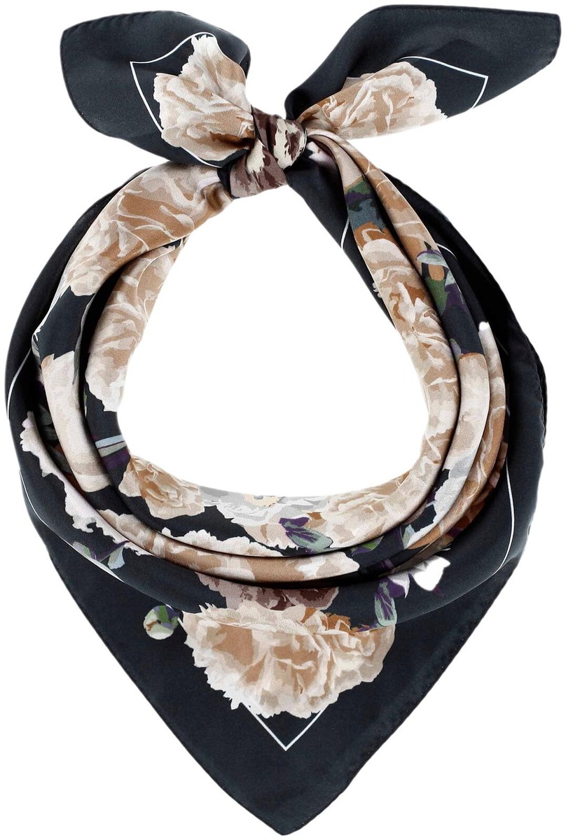Ylellinen Italiassa valmistettu silkkihuivi jonka voi solmia monella eri tavalla. Runsas näyttävä kukkakuosi. Koko 70x70 cm.